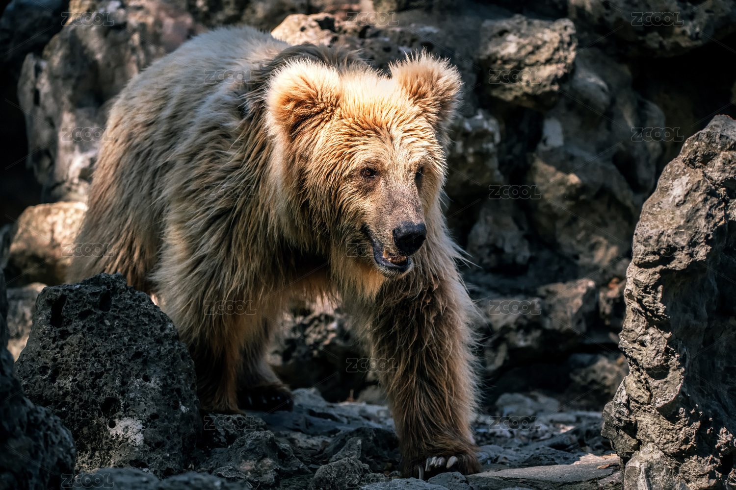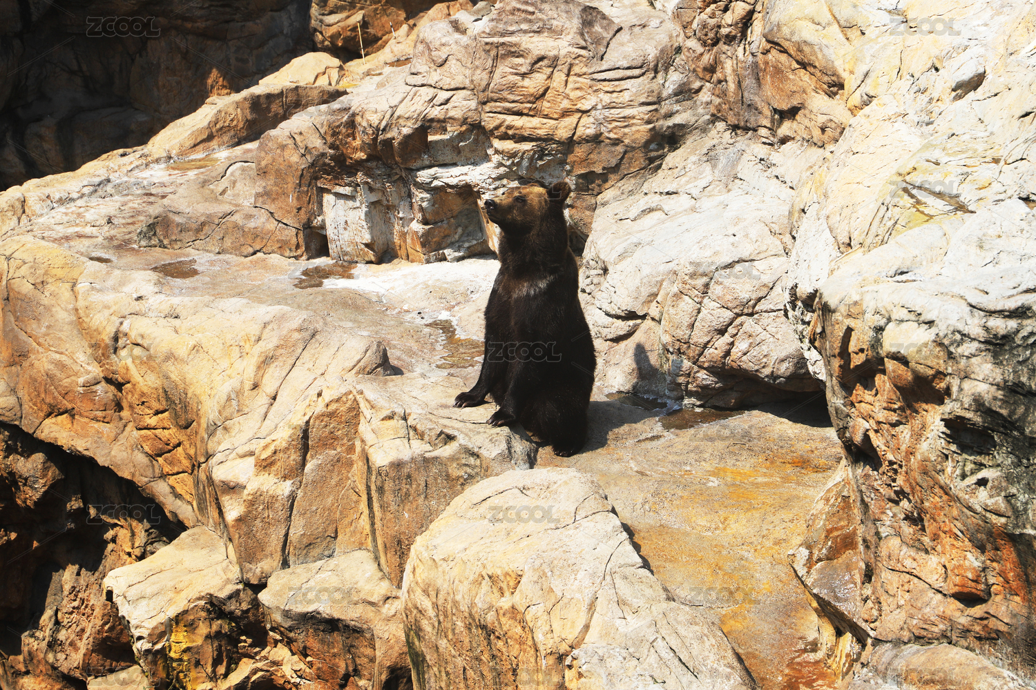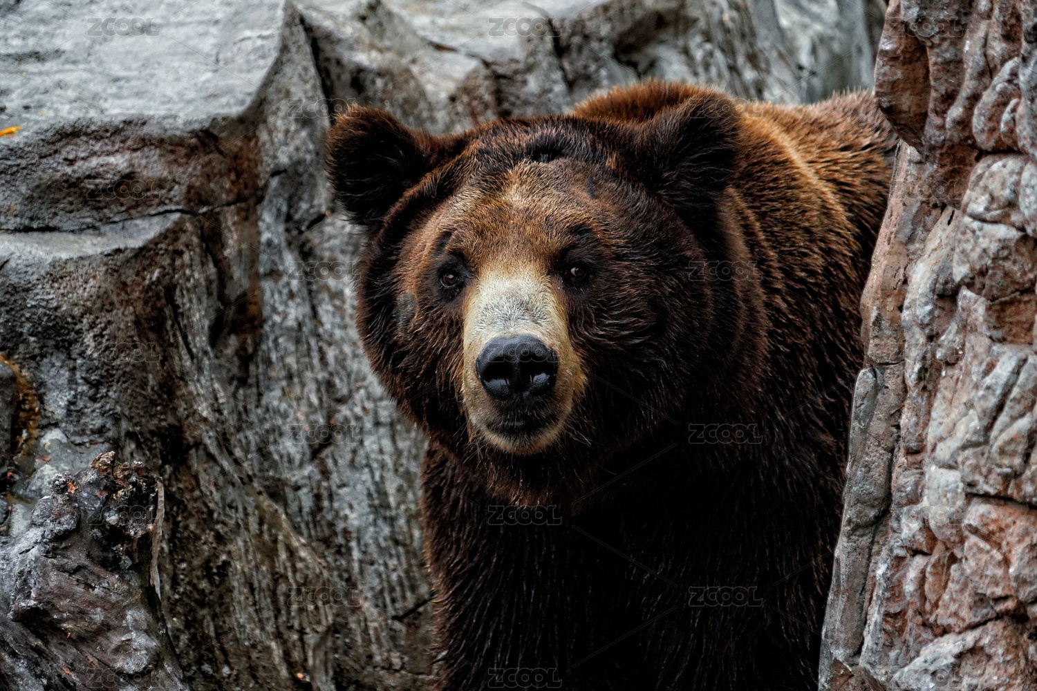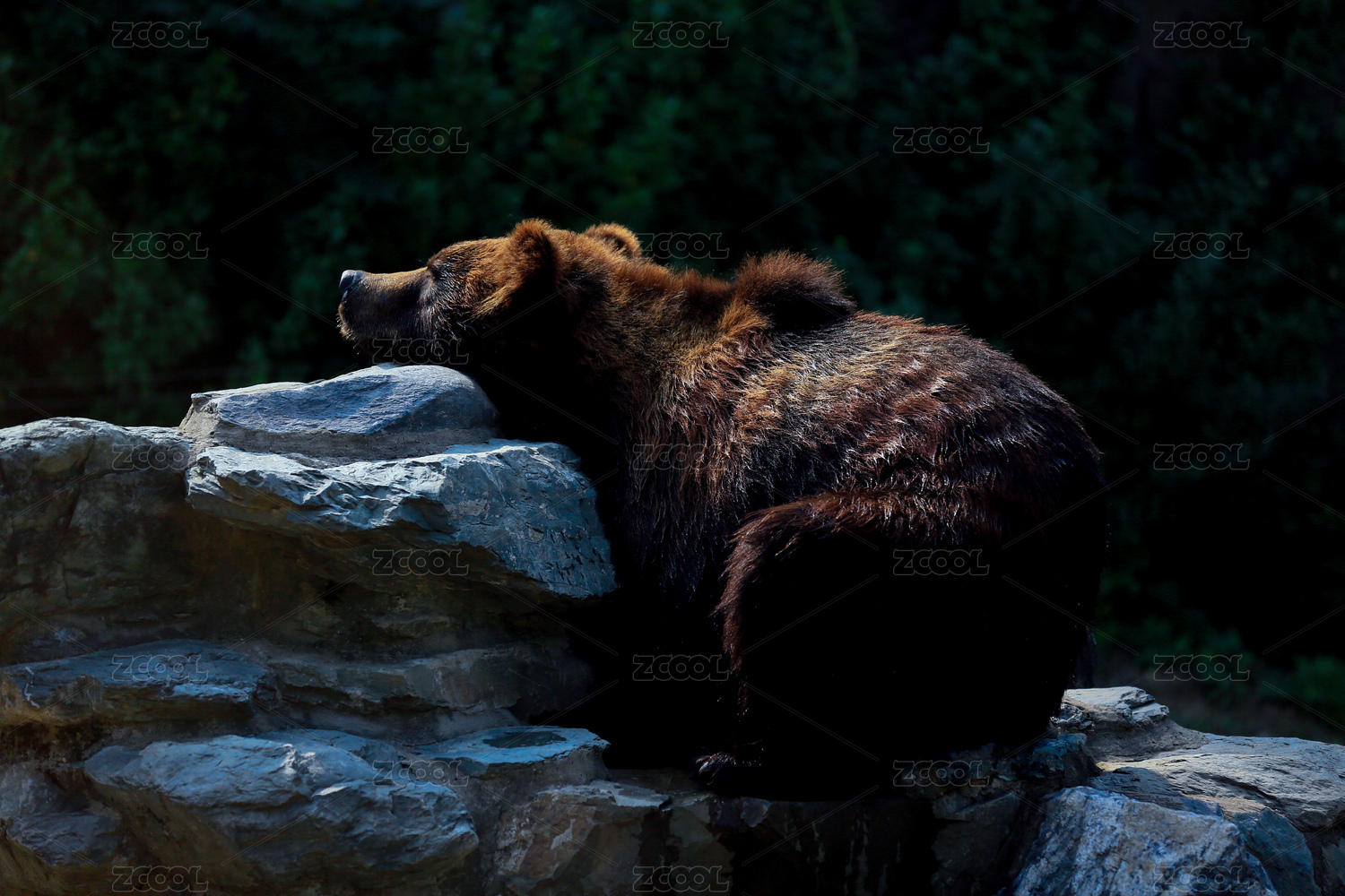 坐在石头上的棕熊特写