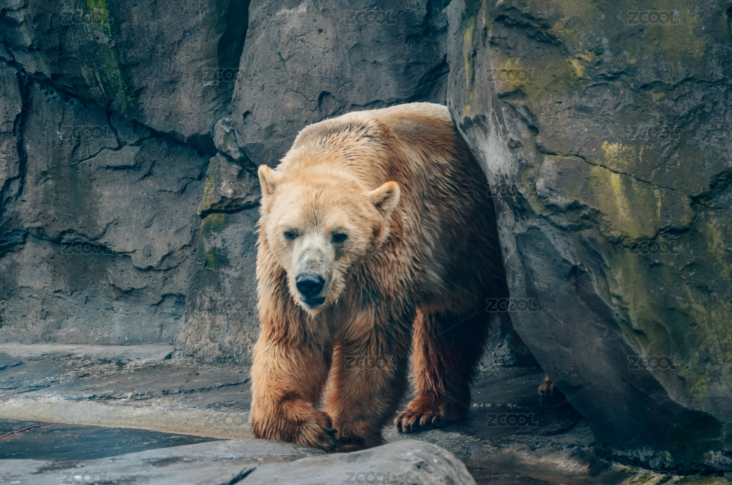 北极熊在石头下行走