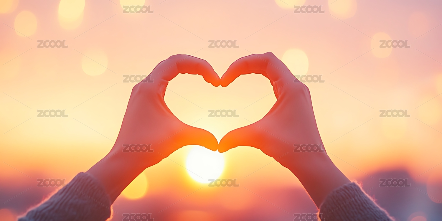 夕阳下的爱心手势
