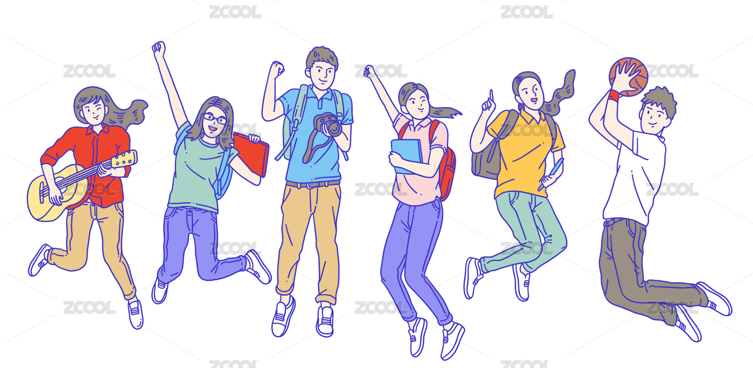 一群青年在草地弹奏音乐唱歌跳舞插画
