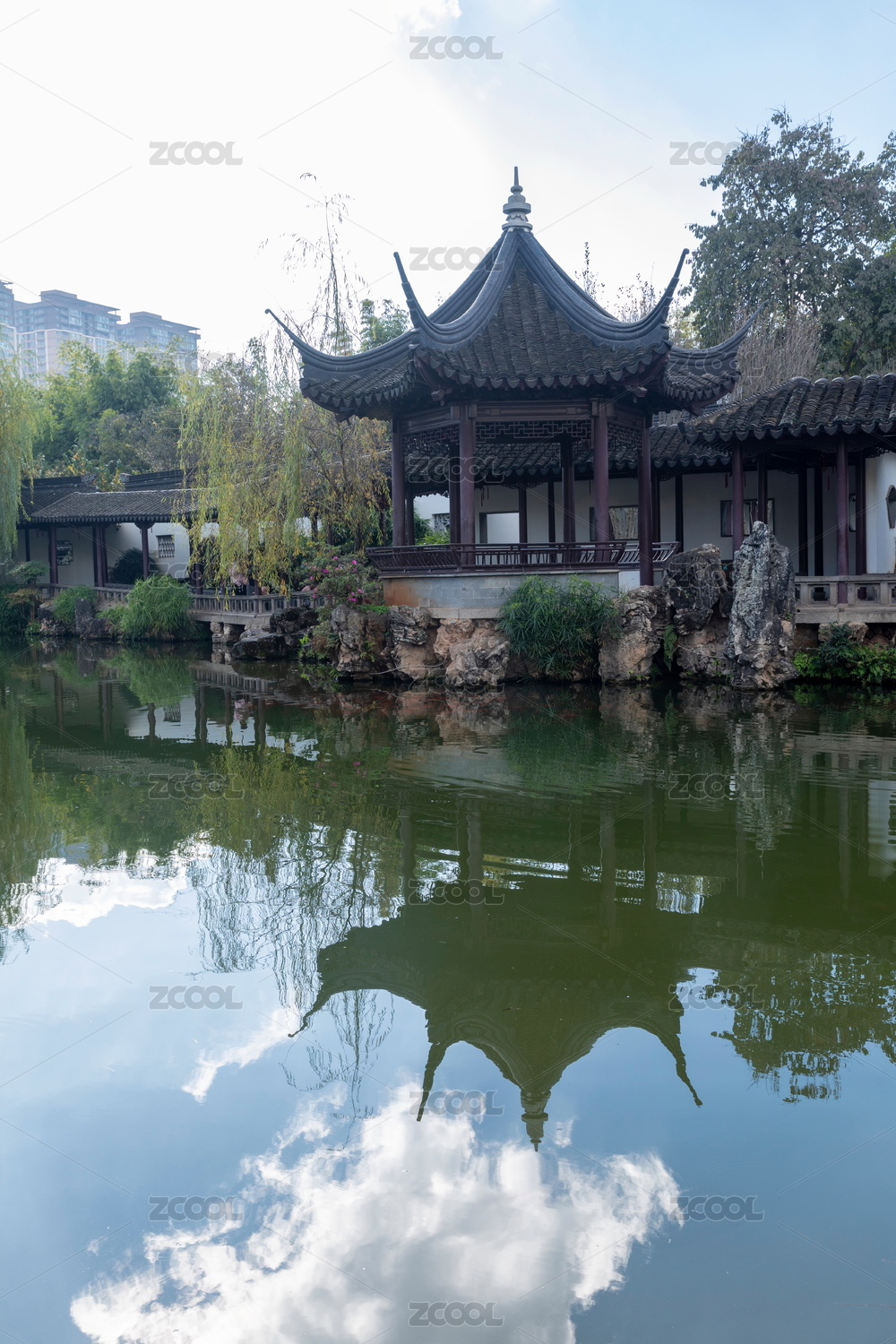 江苏同里古镇珍珠塔景园亭台水榭园林景观