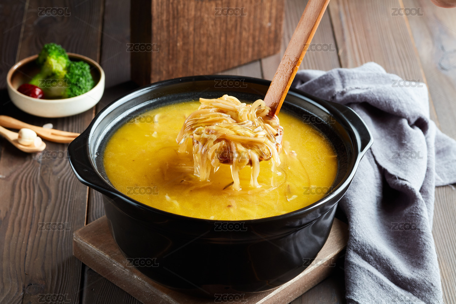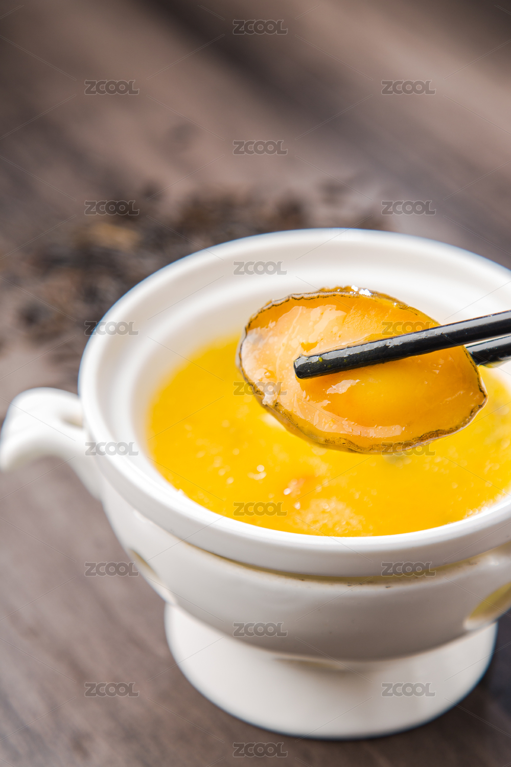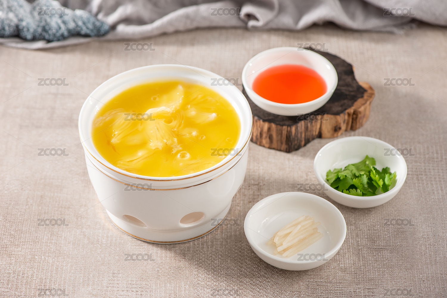 白色自热炉上的一碗黄澄澄的鱼翅养生羹