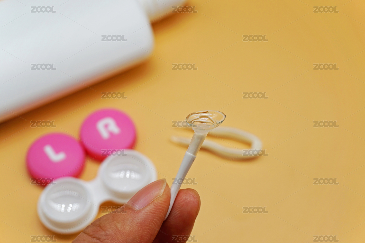 橙色背景中月抛日抛隐形眼镜盒