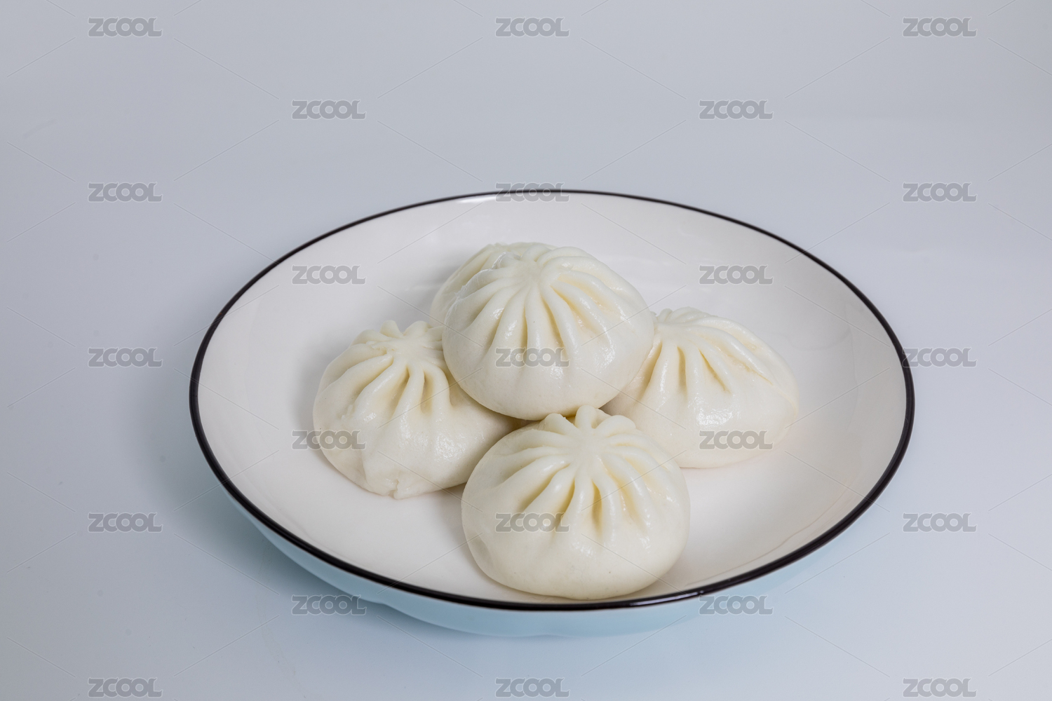 一盘素包子特写木桌面背景