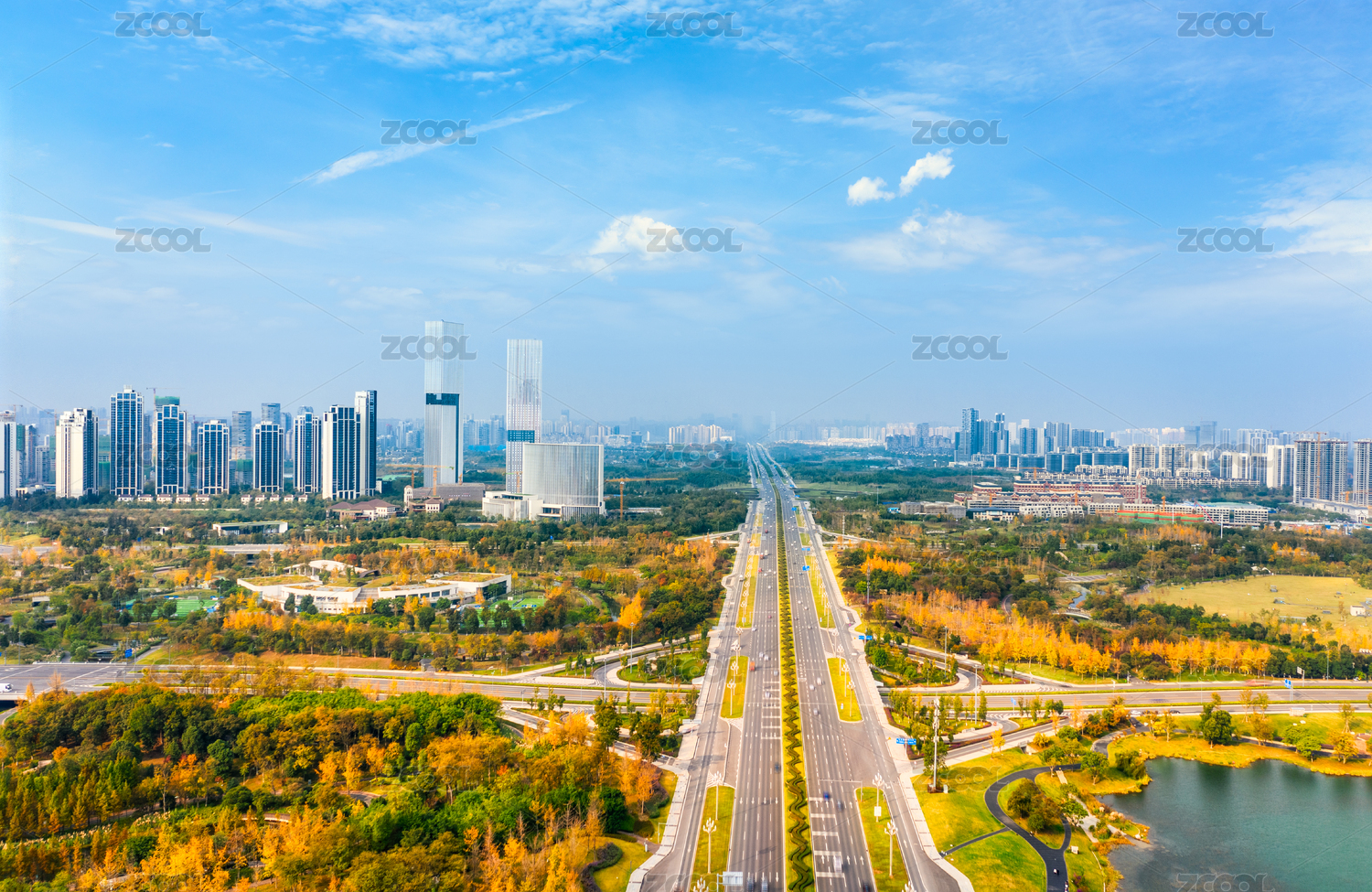 成都高新区环球中心锦城湖公园绕城高速航拍