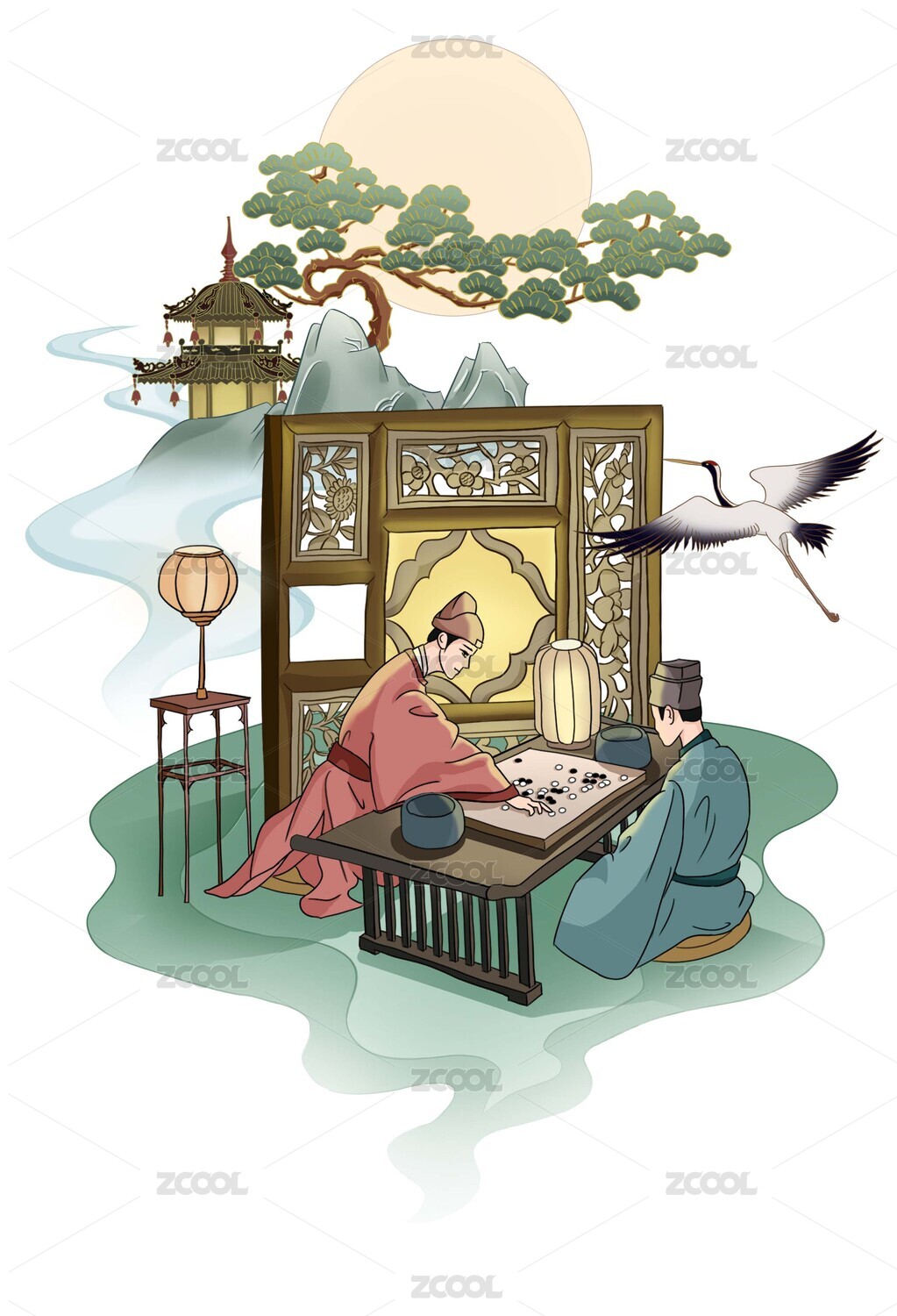 杯弓蛇影中国风教育文学故事插画古代人物成