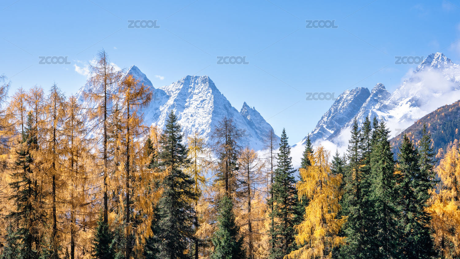中国四川小金县四姑娘山双桥沟雪山彩林