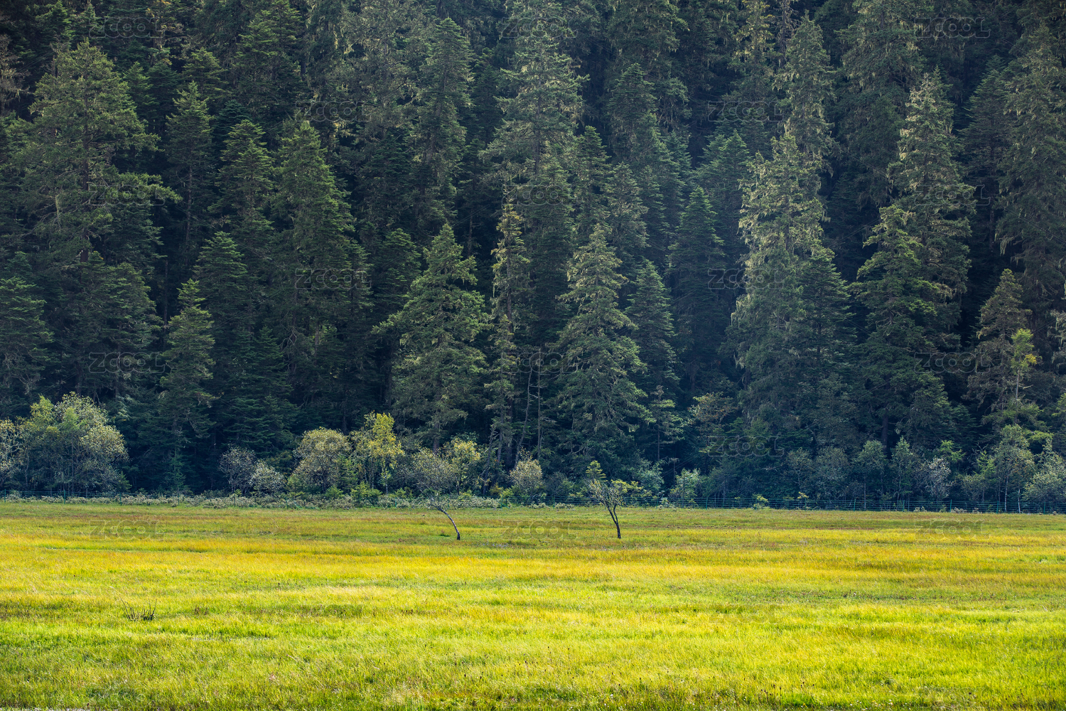 四川稻城亚丁景区的原始森林与高山湖泊风光