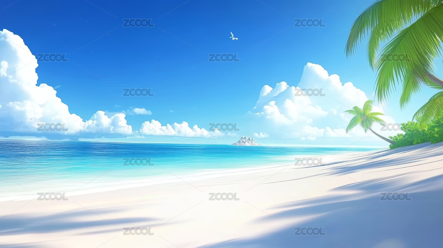 夏日海滩风景图