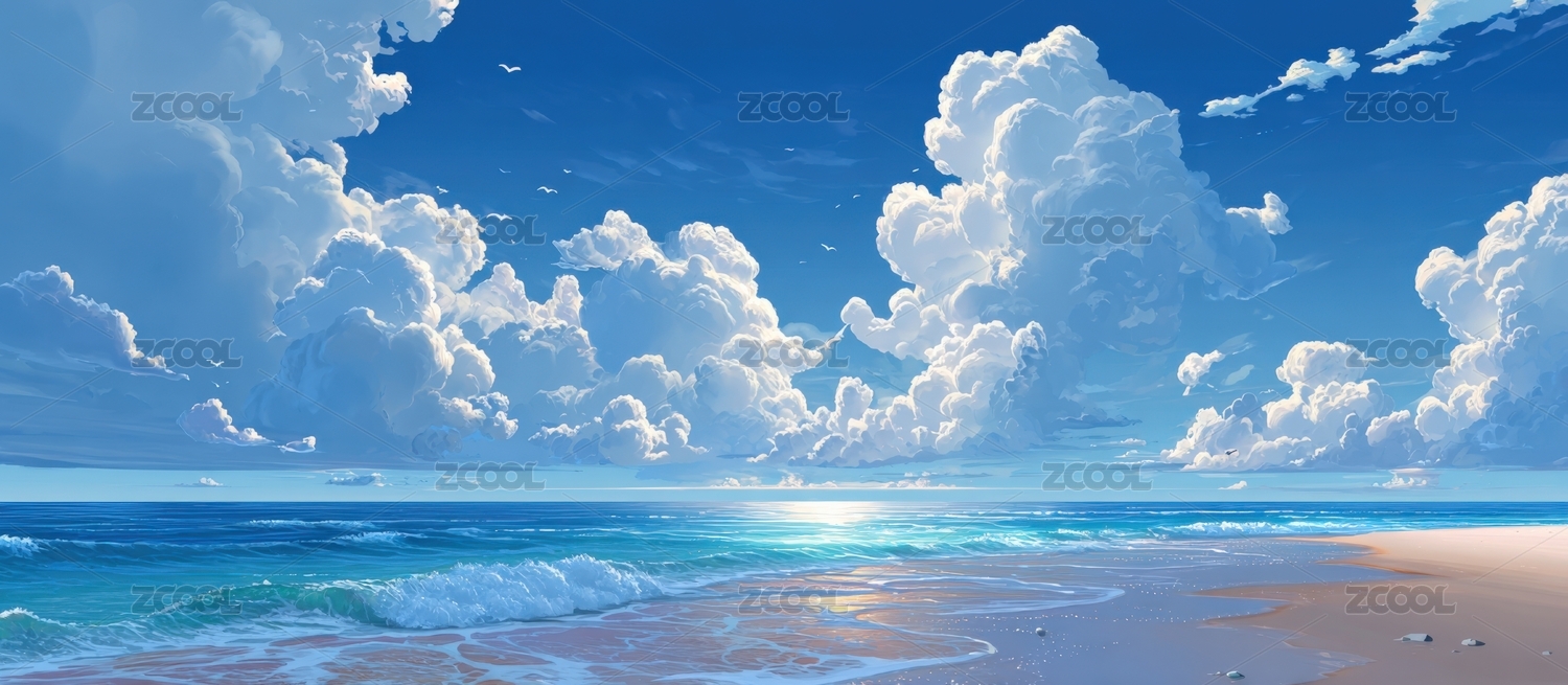 海边风景新海诚日漫风插画