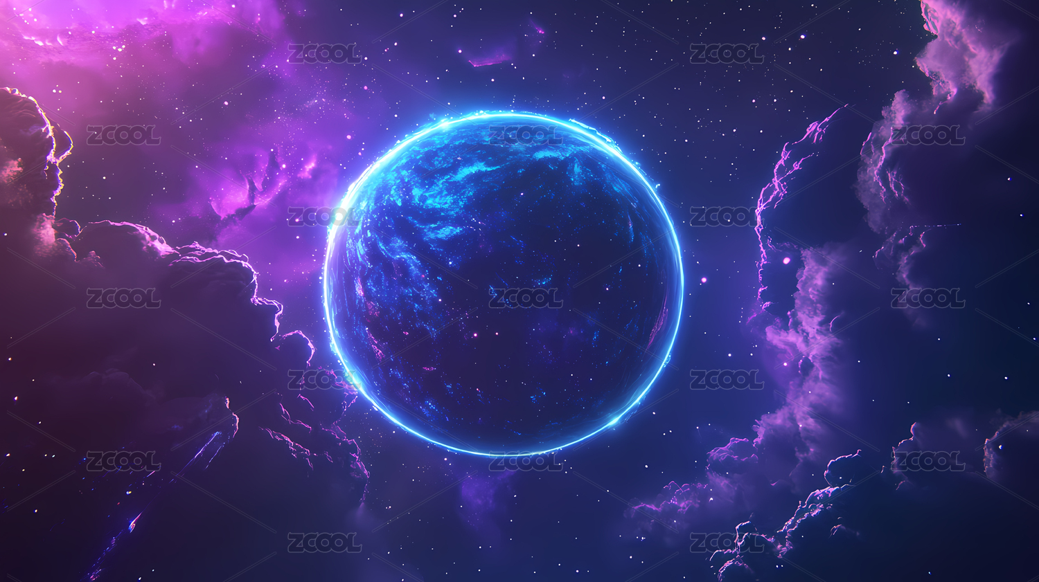 梦幻唯美紫色数字星球背景