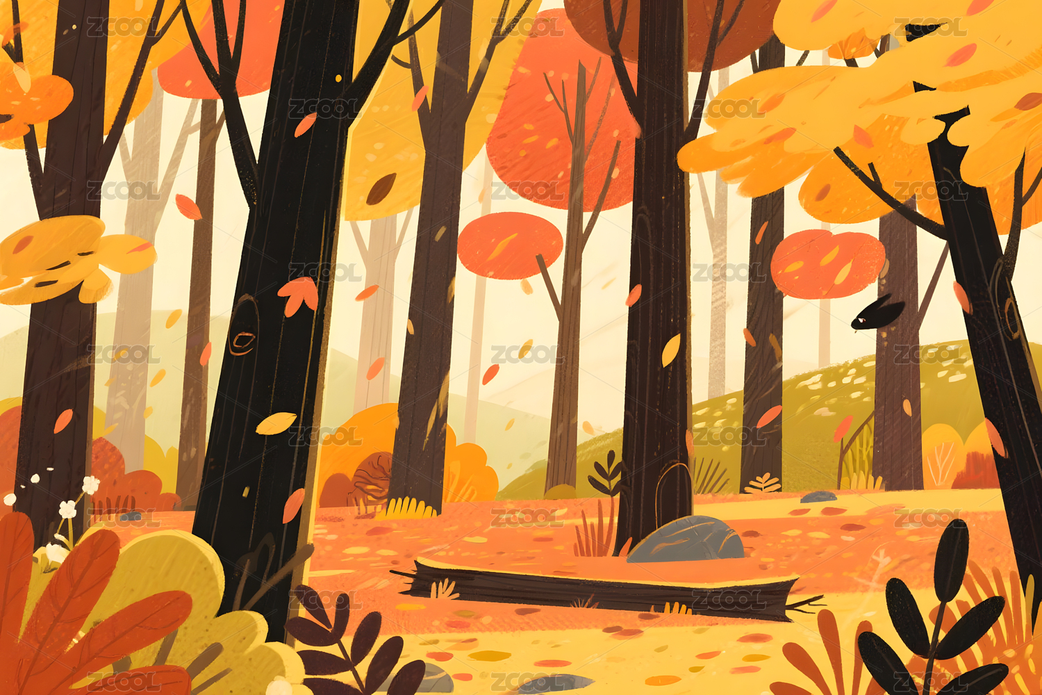 秋日童话森林插画