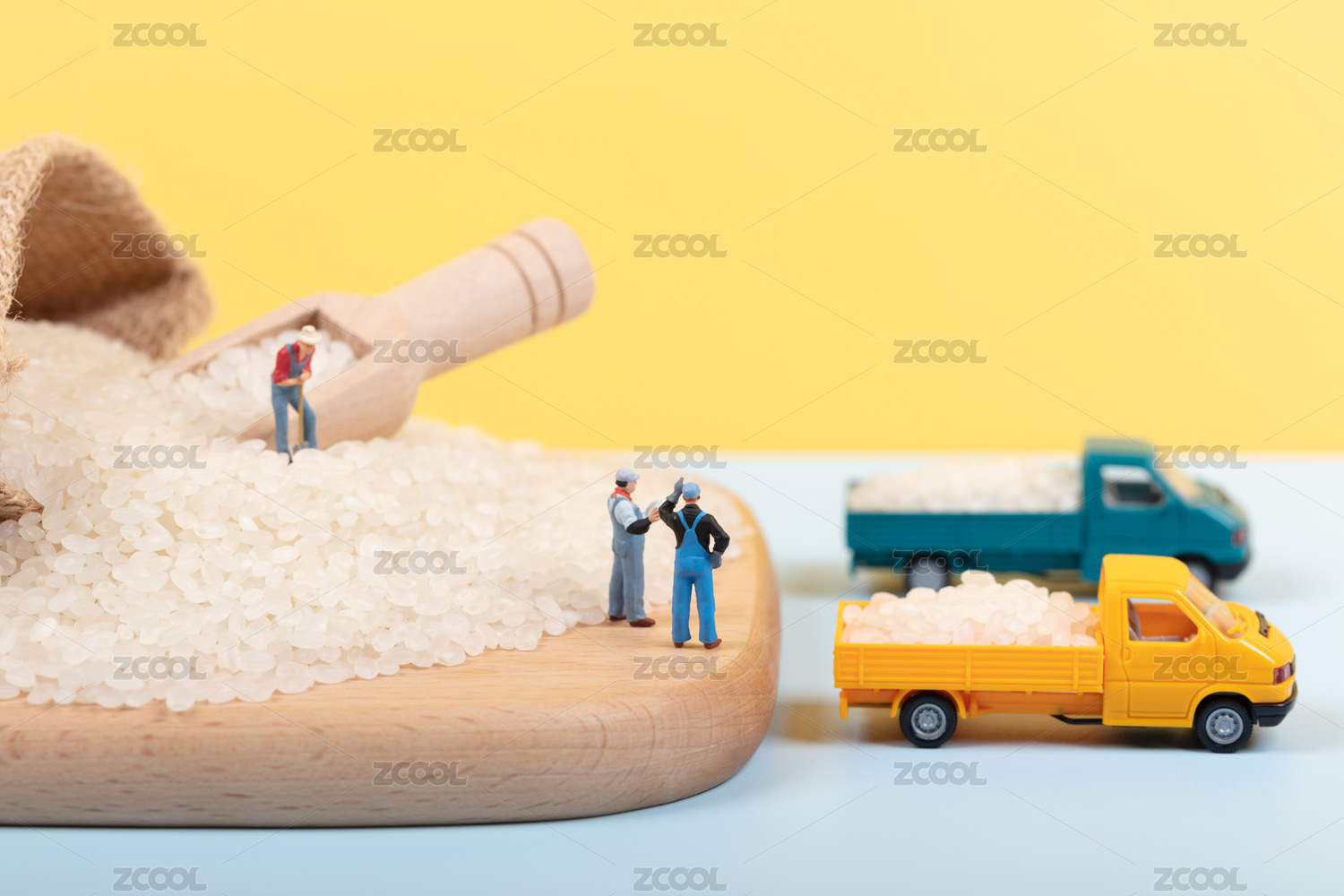 微缩创意大米仓储运输与工人