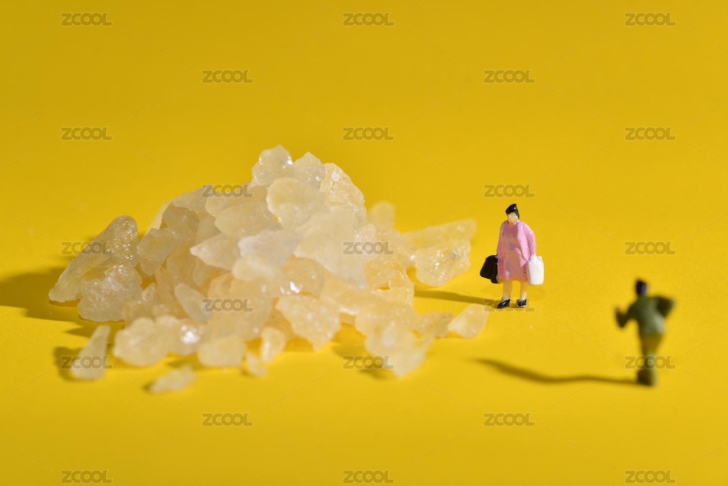 黄色背景上的小人与冰糖,关于健康的思考
