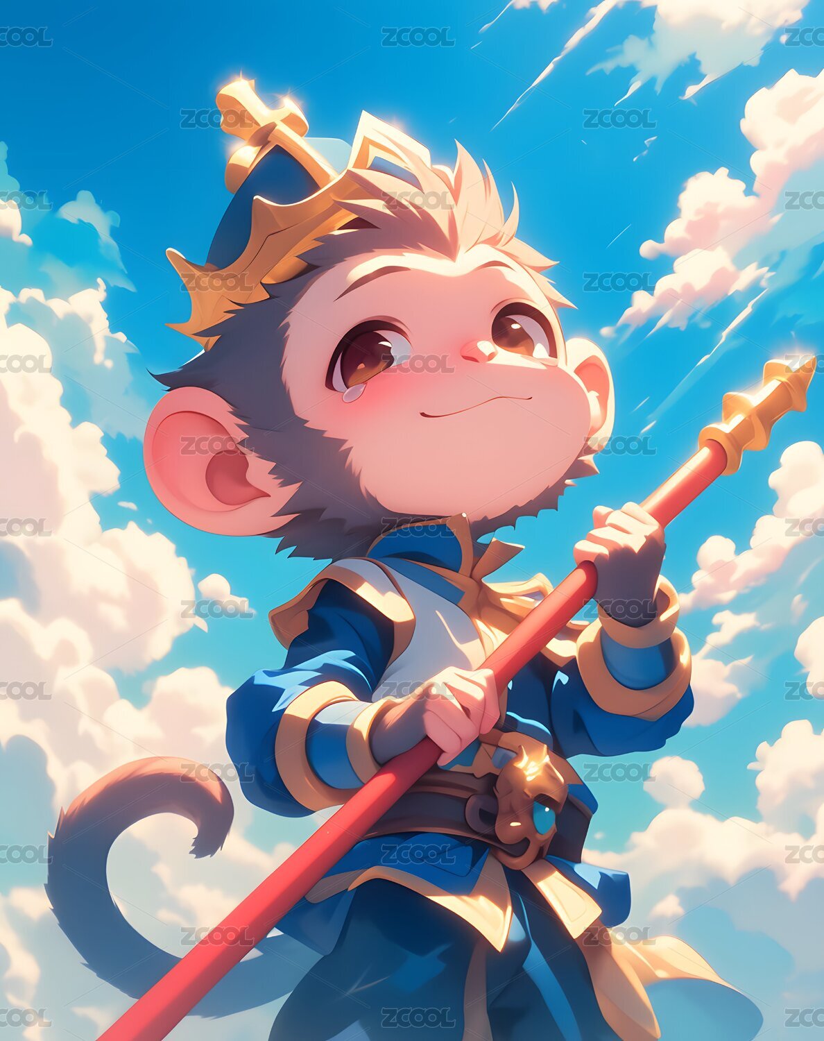 AIGC202407,孙悟空,西游记,猴子,人物,动物,生肖,Q版,卡通,q版
