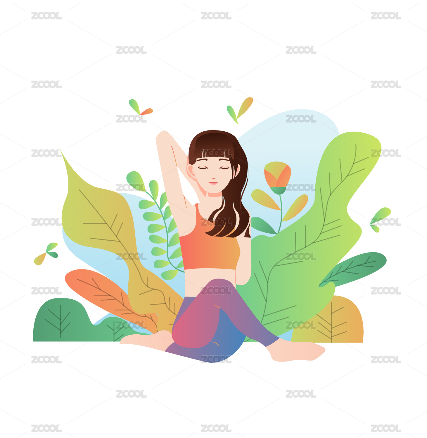 扁平风格女孩在户外打坐冥想