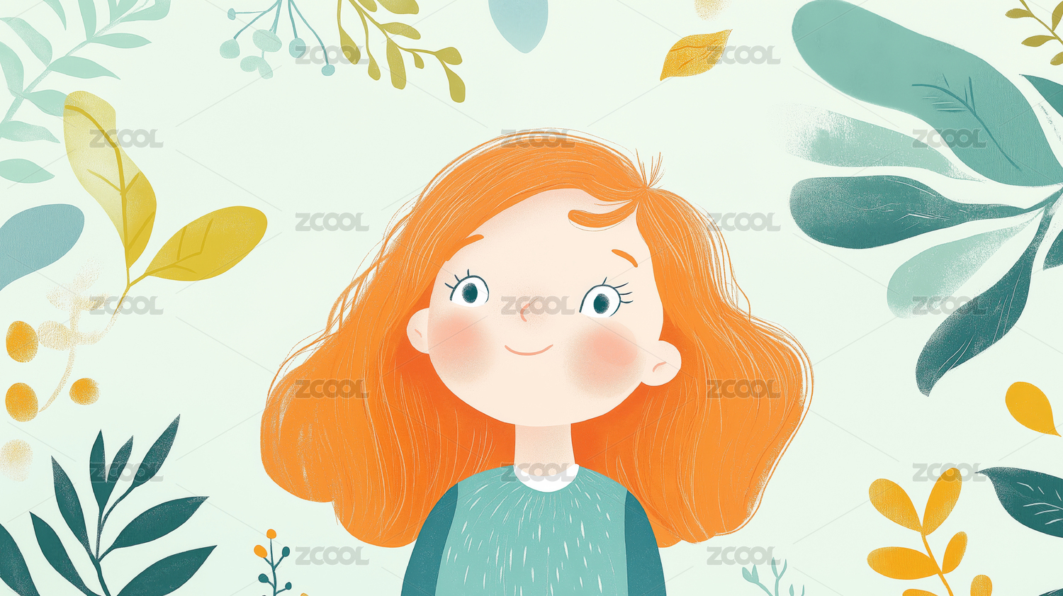 可爱扁平风花朵和女孩