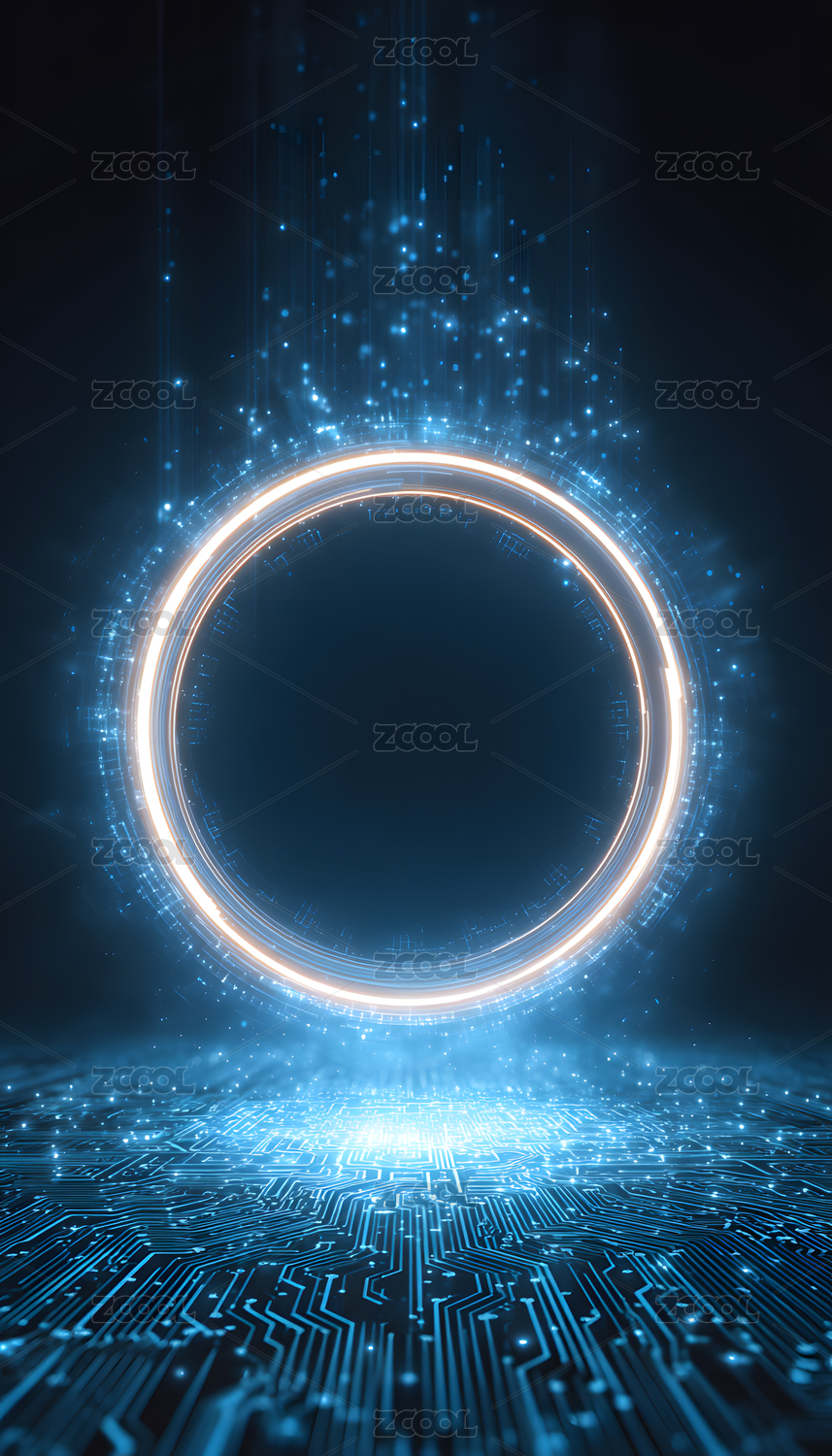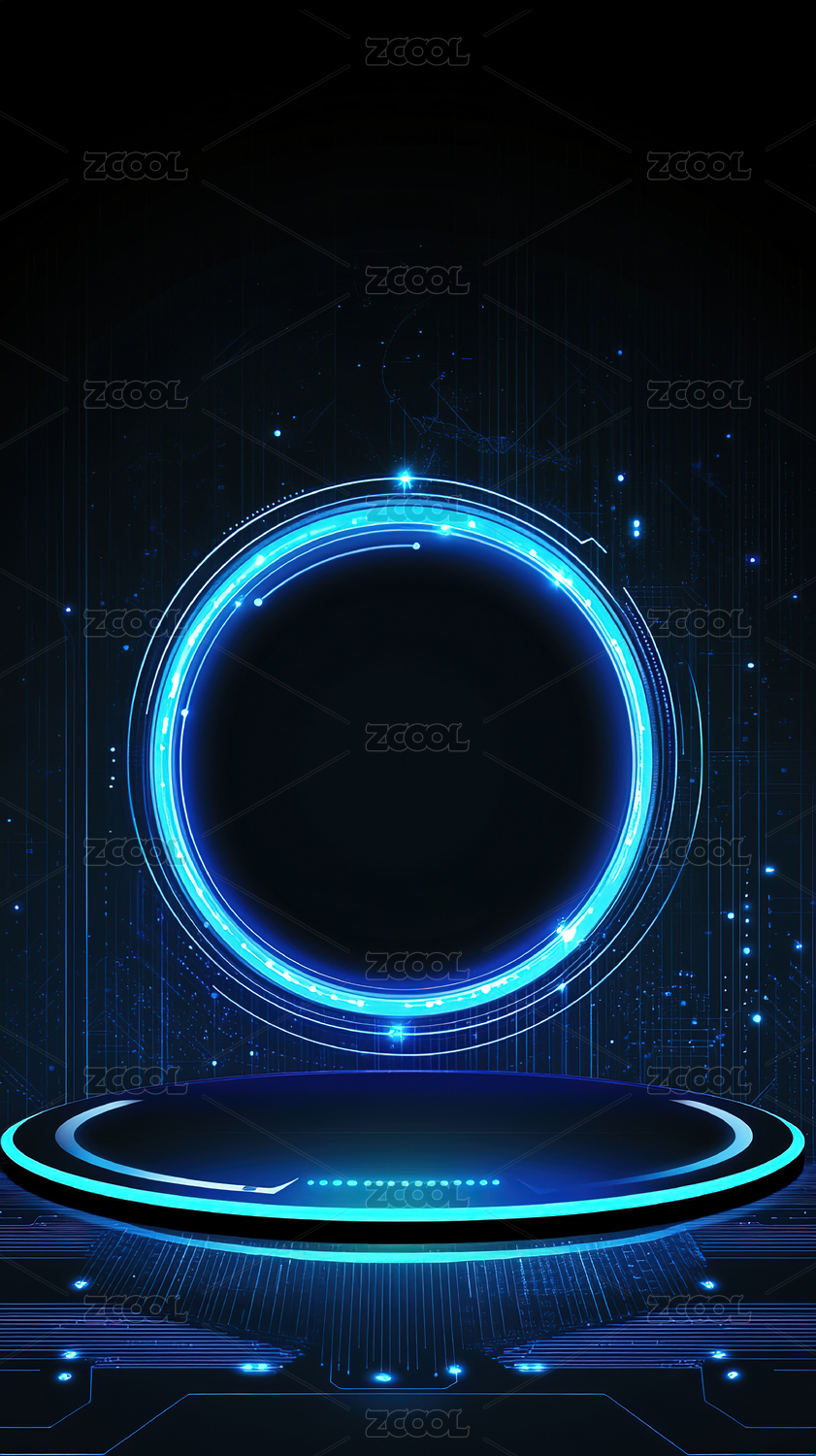 蓝色,产品展台,发光,圆形,电商,光,背景,时尚,科技,未来