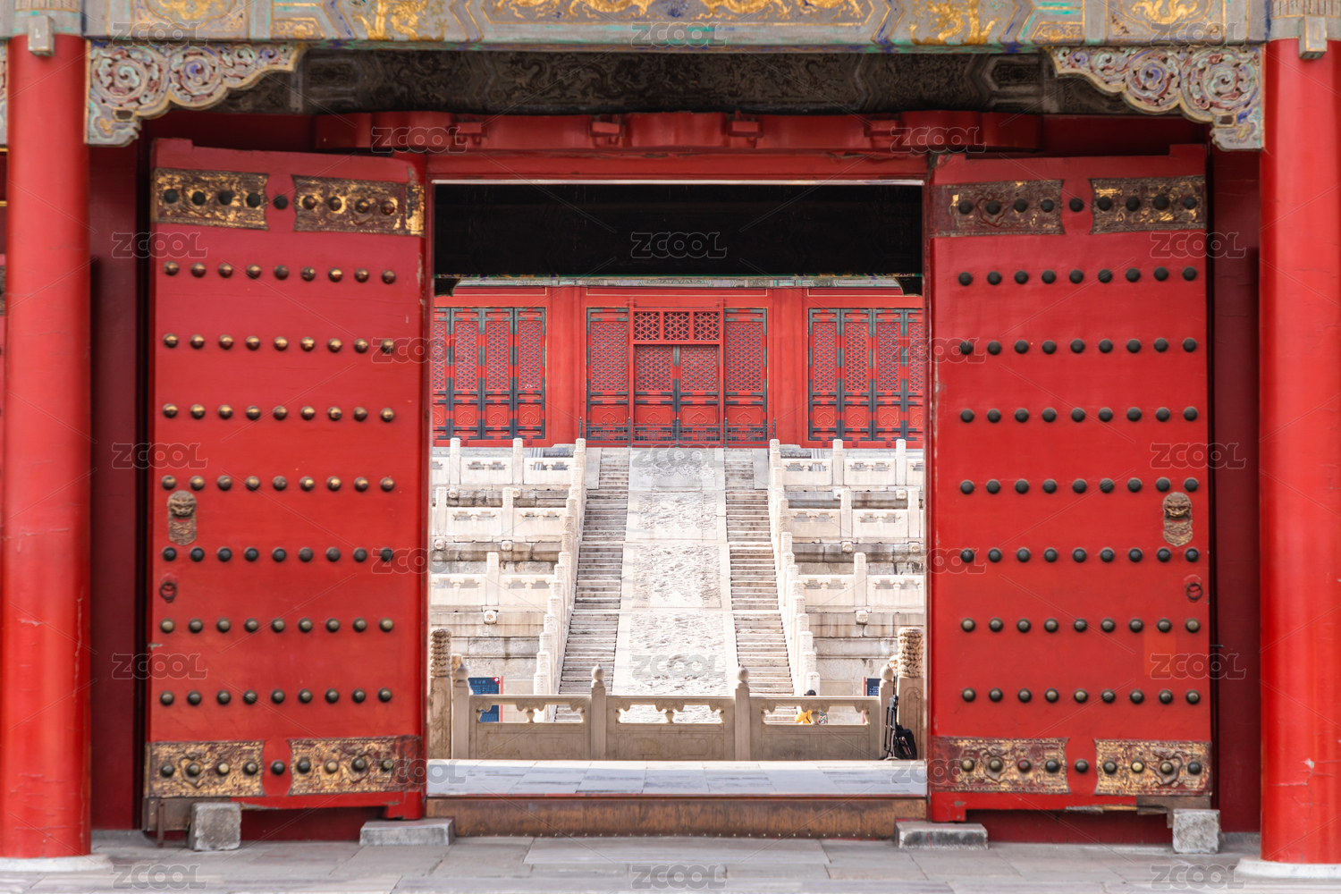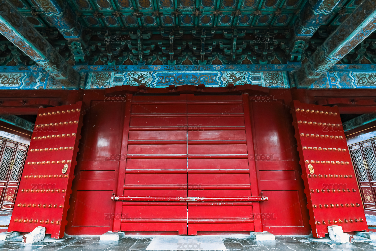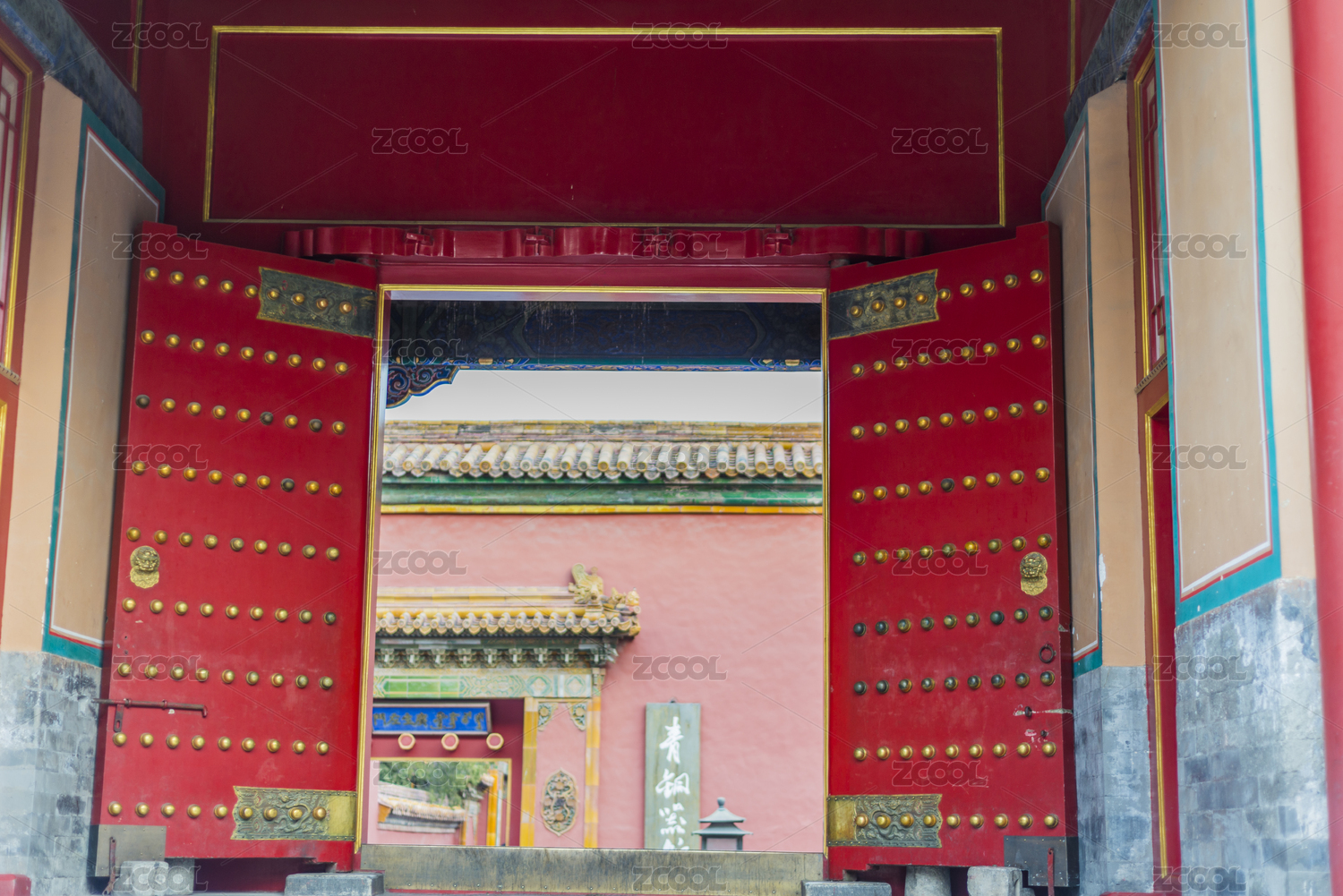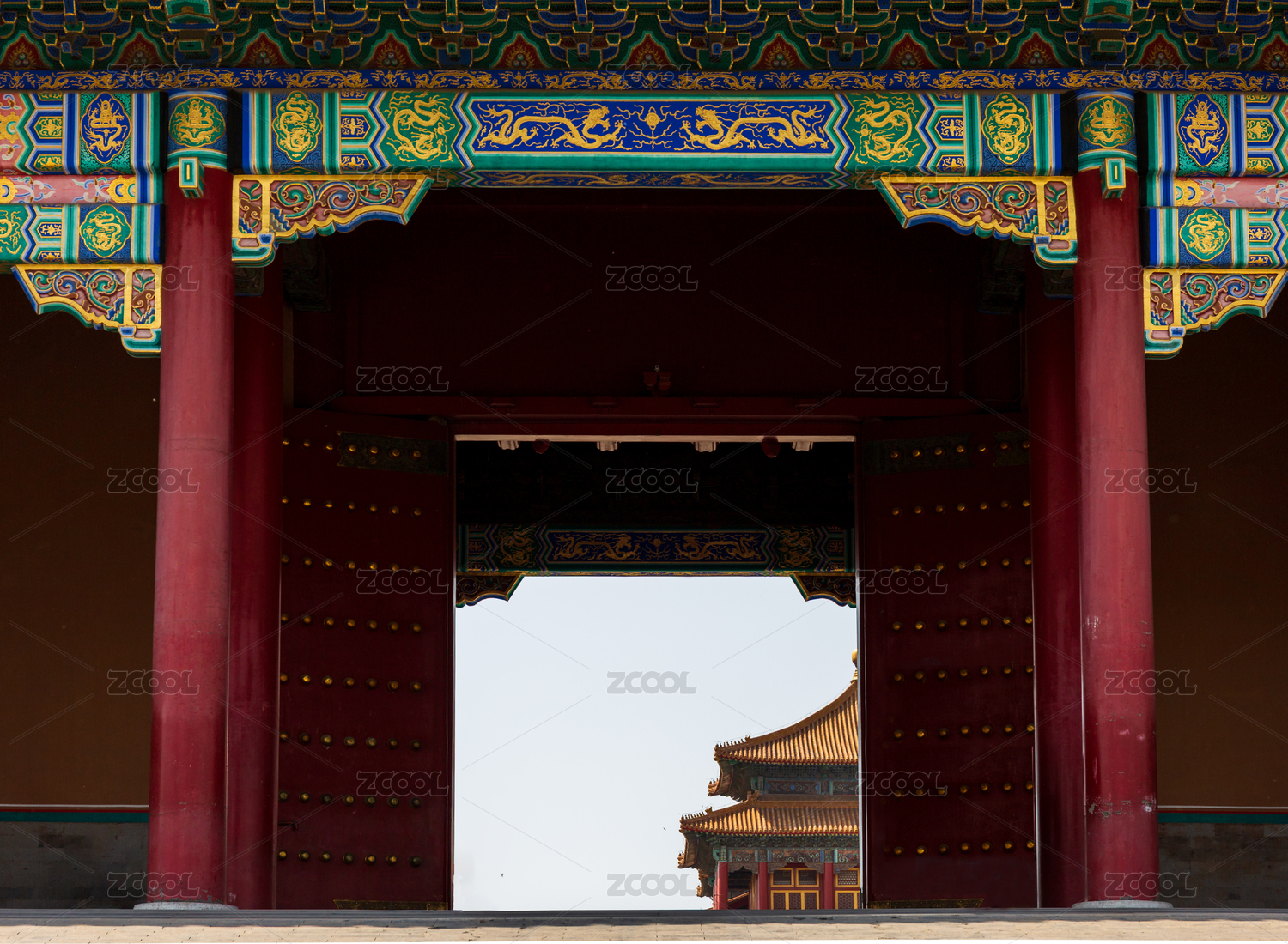 中国北京故宫雕梁画柱的门廊及宫殿房檐