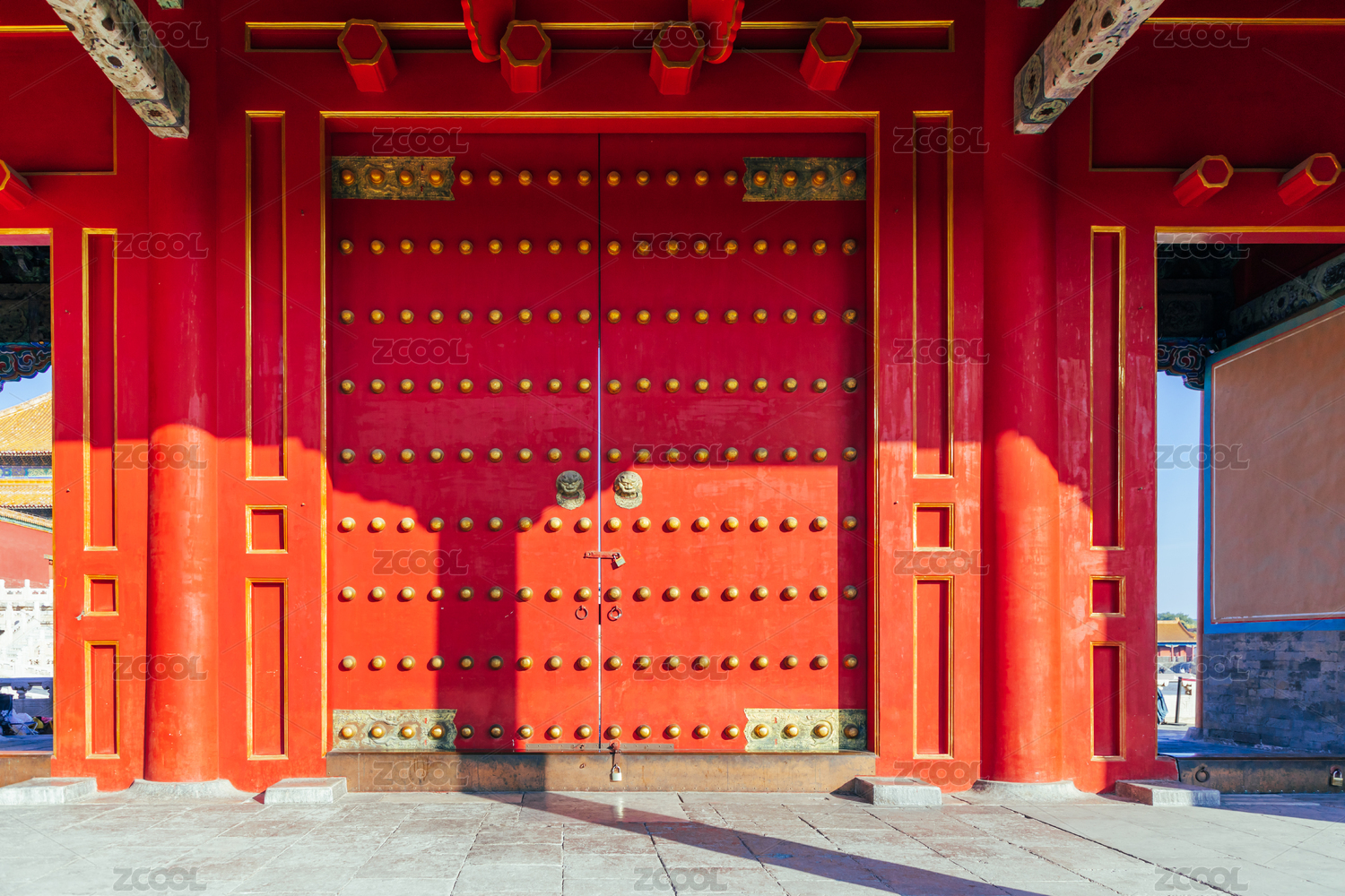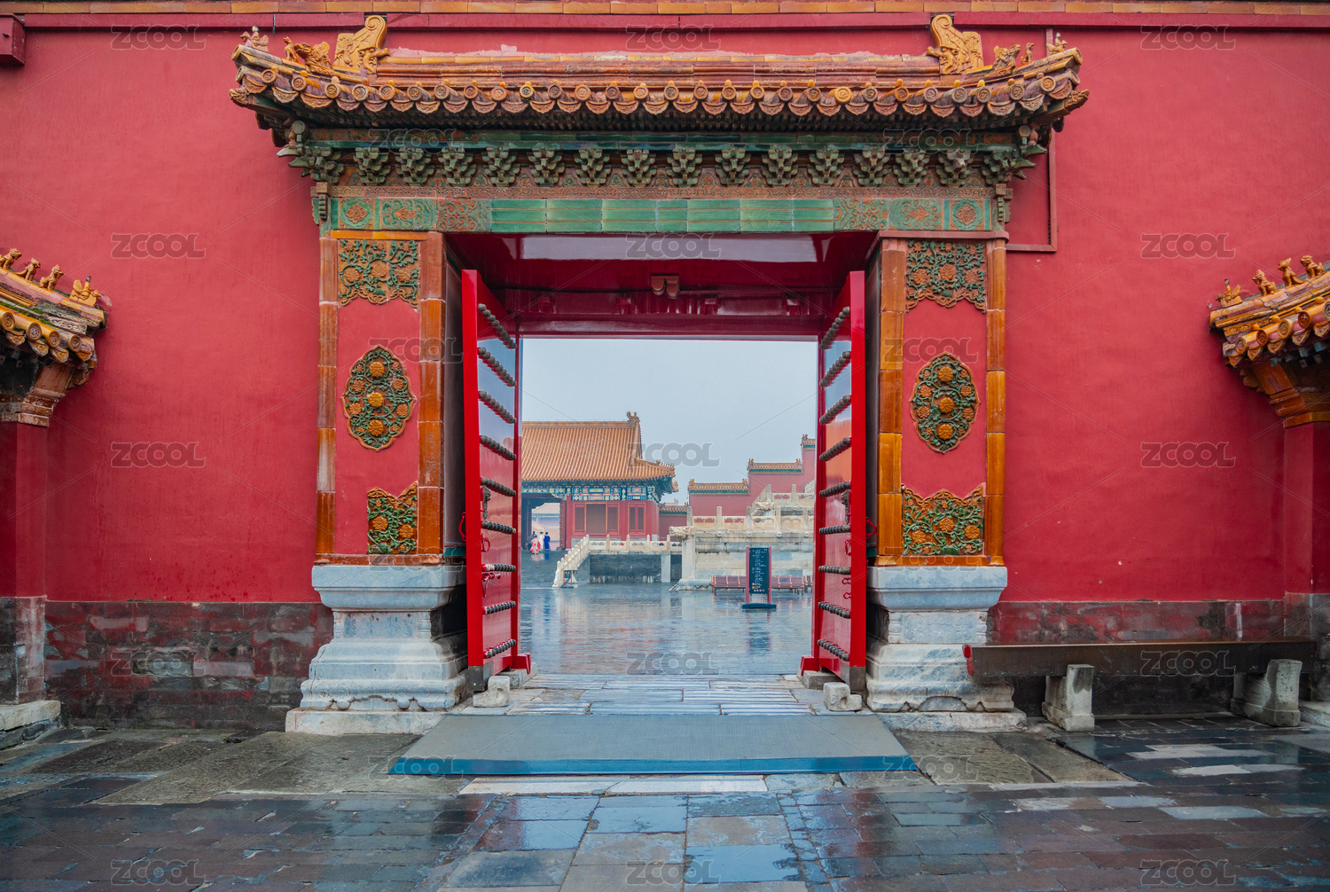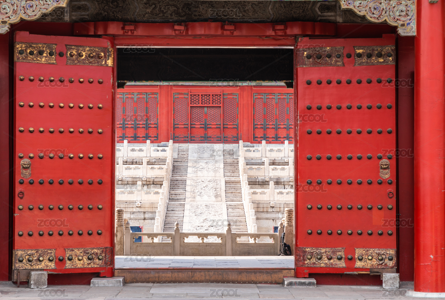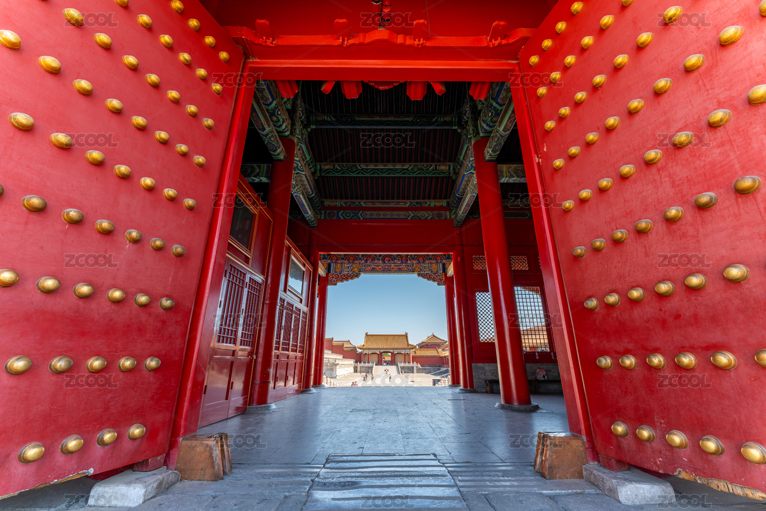 中国北京故宫雕梁画柱的门廊及宫殿房檐