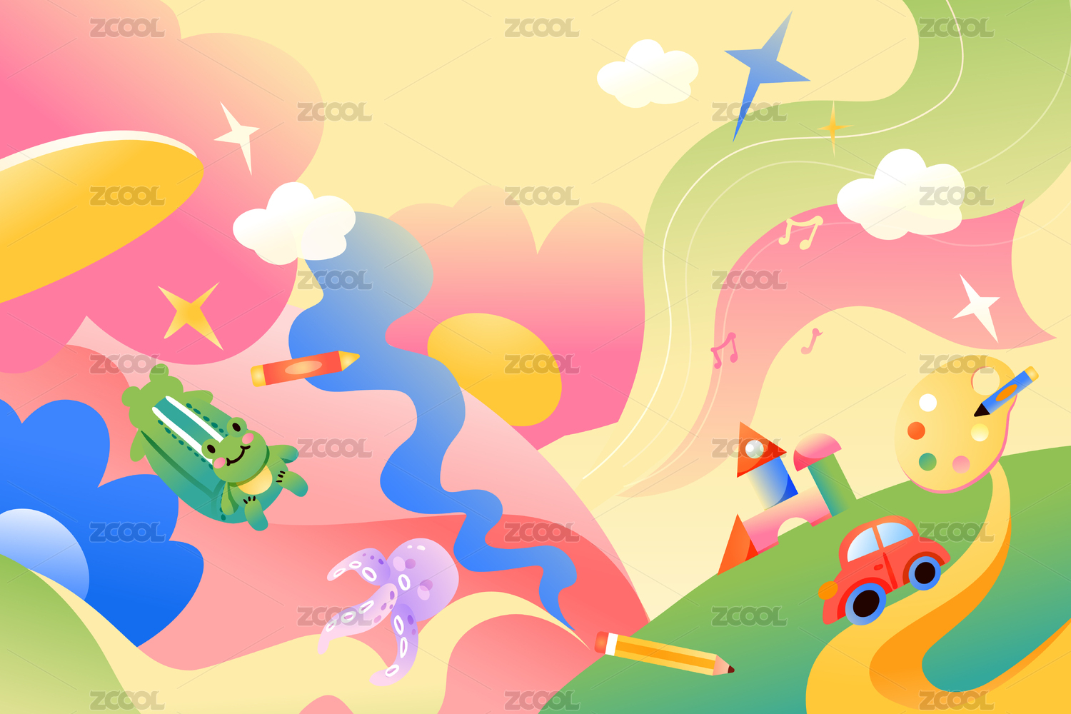 卡通,扁平,插画,插图,元素,风景,矢量,渐变,背景,节日