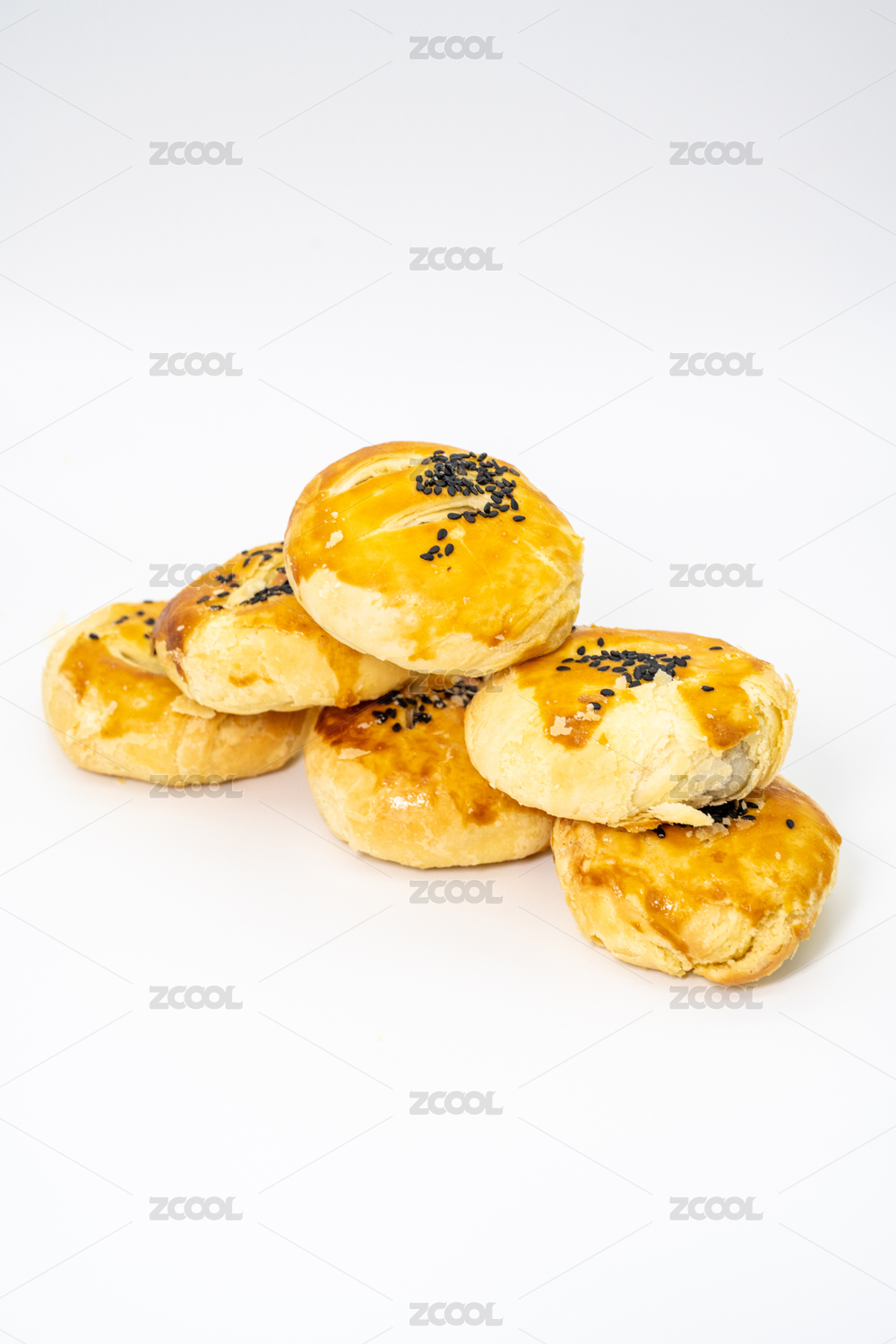 白色背景下美味的中式传统糕点豆沙老婆饼
