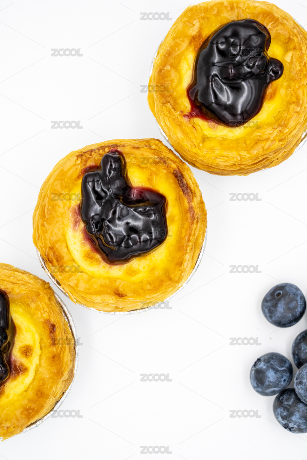 白色背景下的蓝莓果酱蛋挞