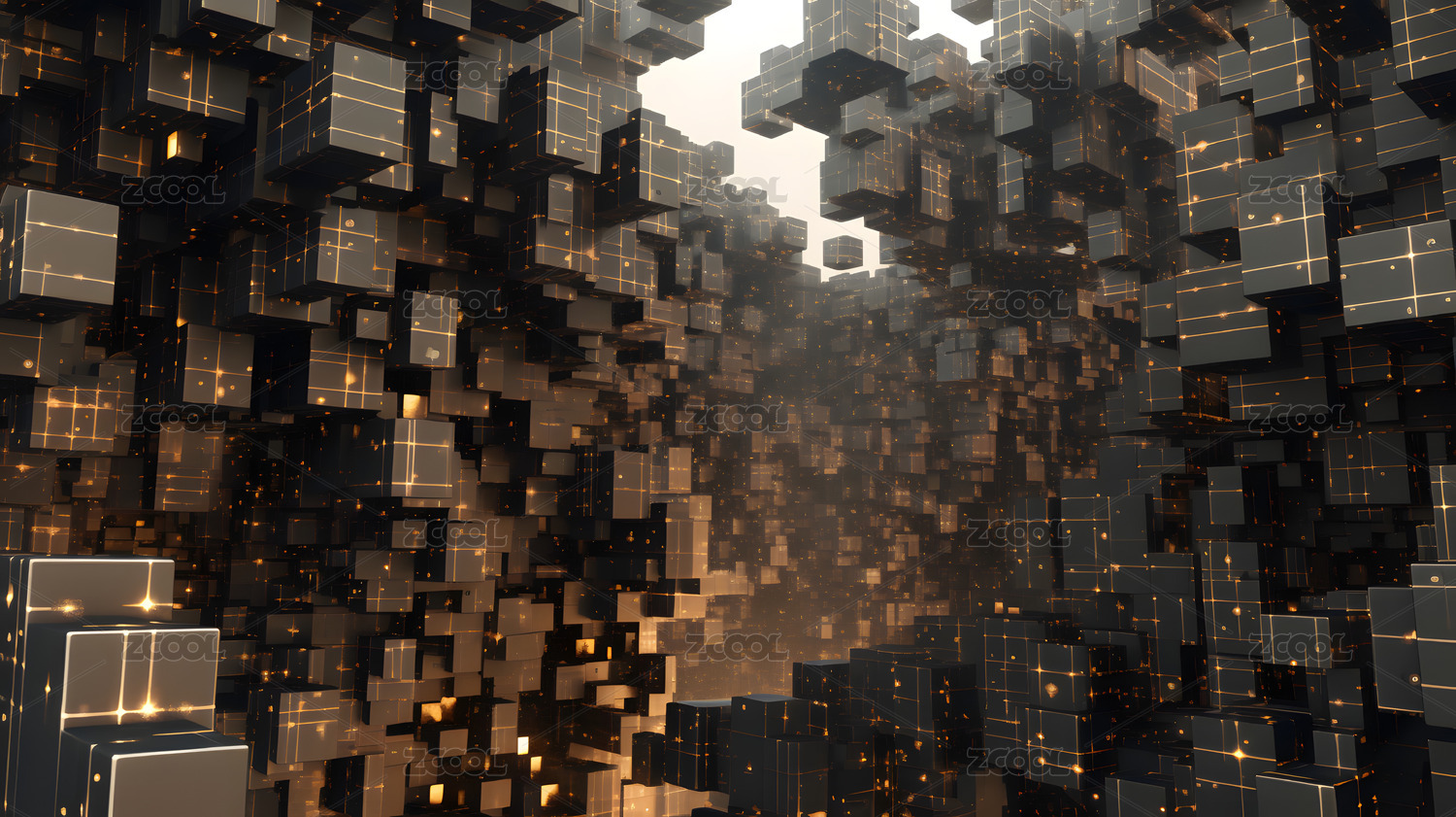 高低起伏的立方体构成的科技感场景 三维渲染