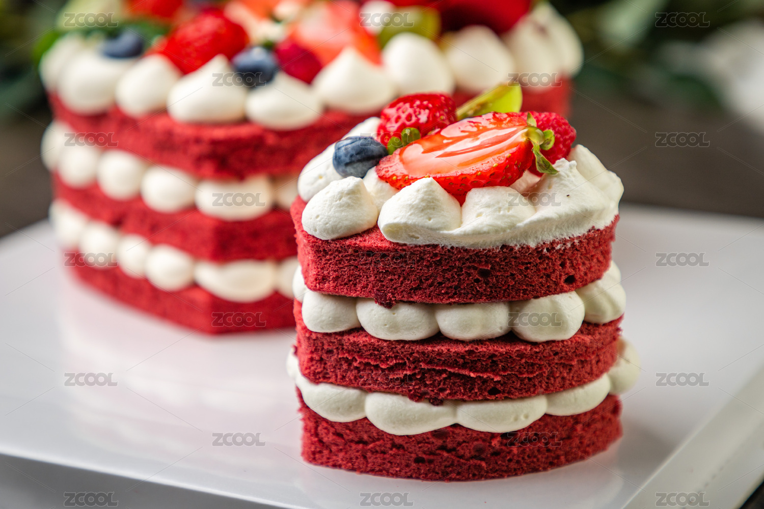 白色桌面上放着一块玫瑰花饼胚奶油蛋糕