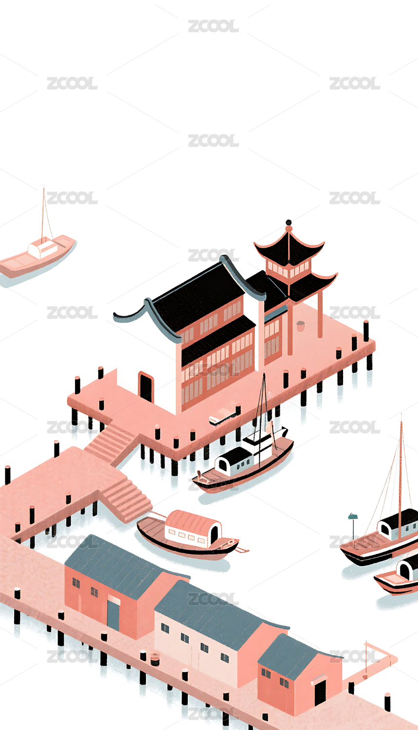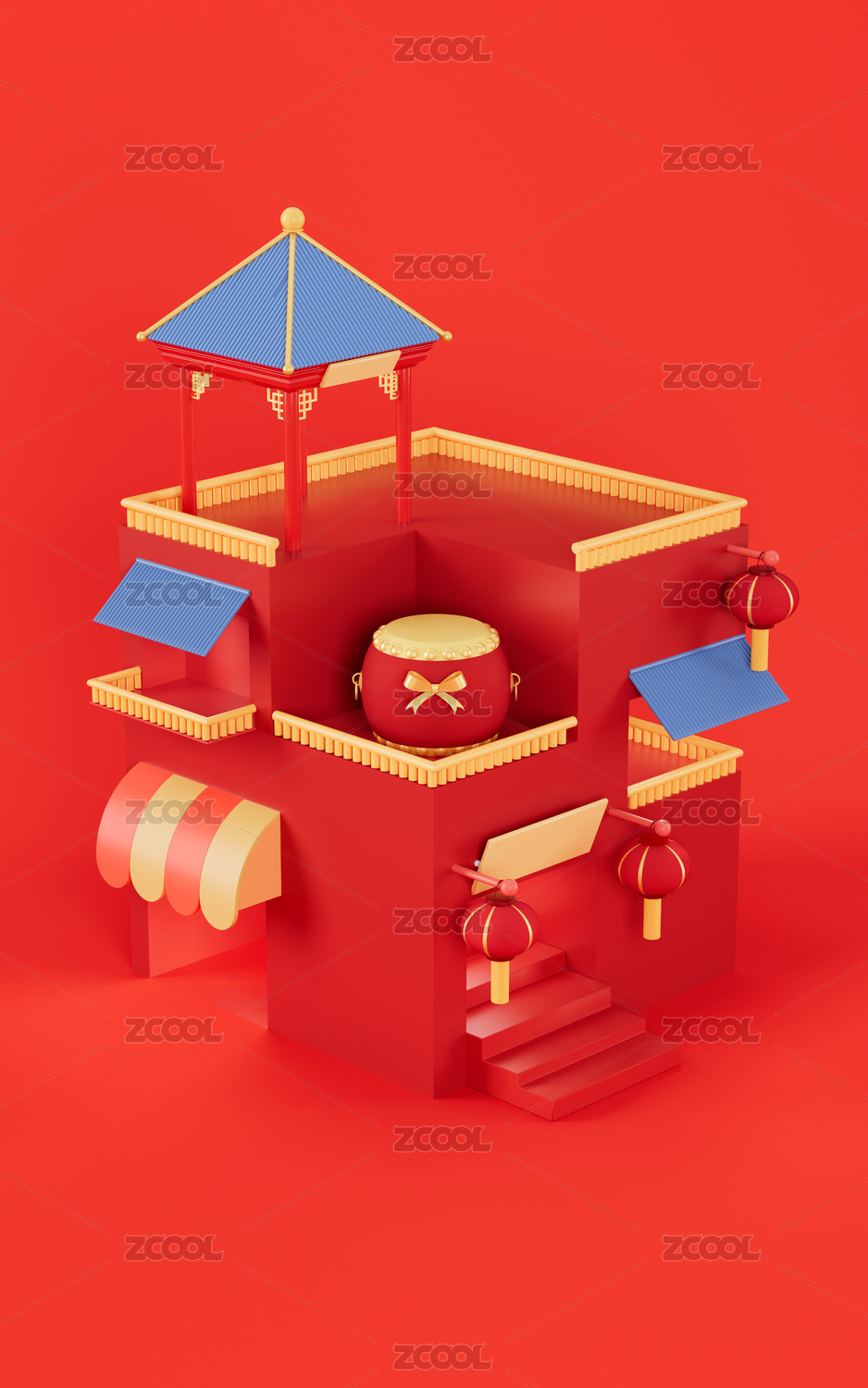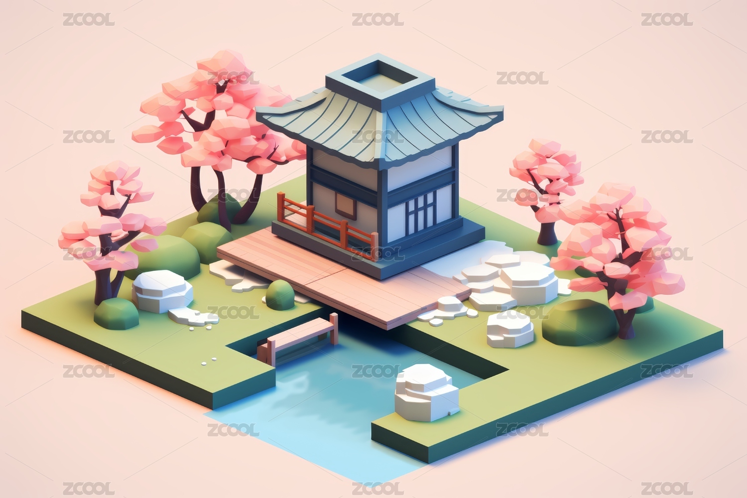 等轴测,红色,木屋,日式,建筑,榻榻米