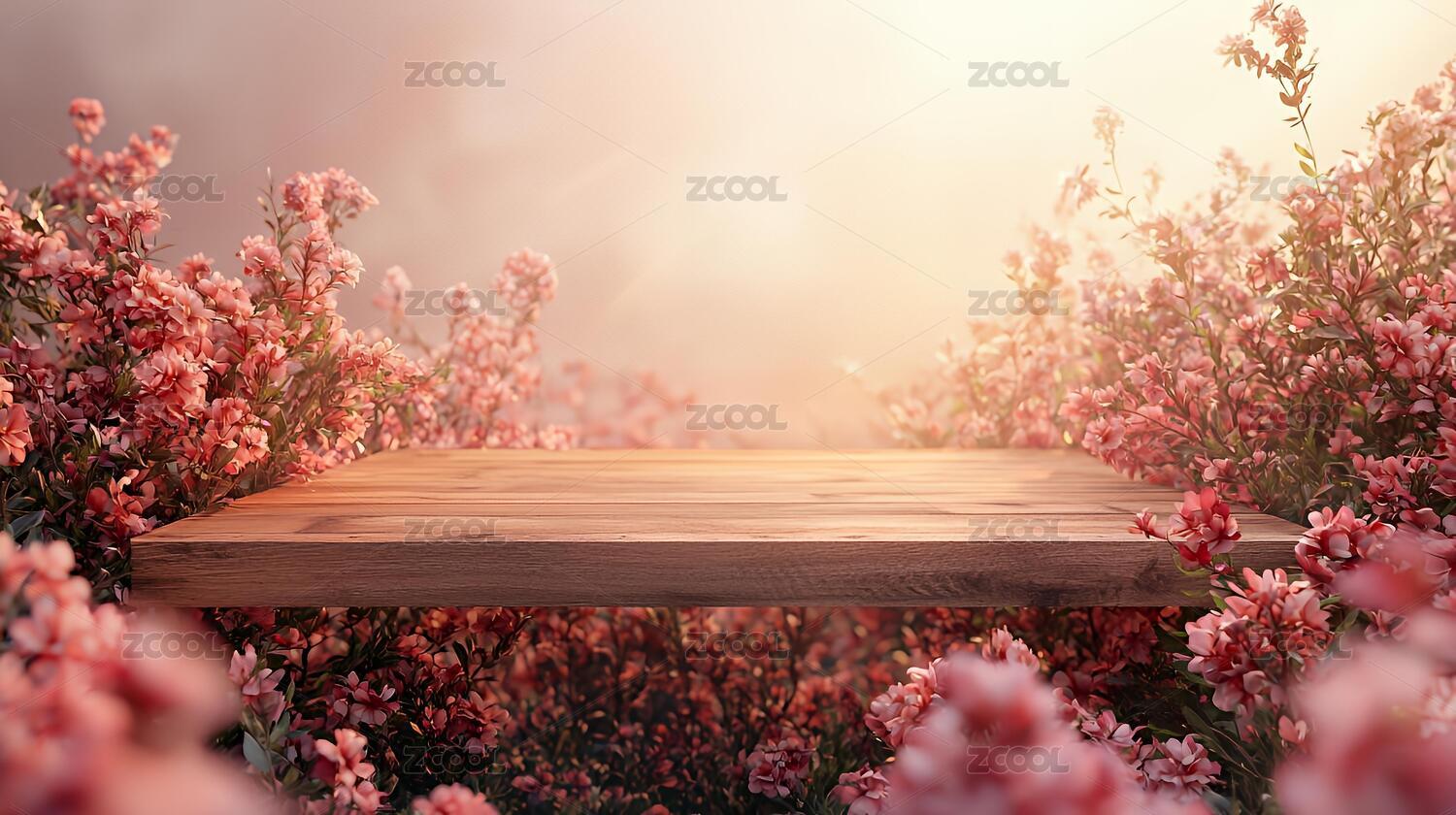 春天粉色花朵桌面产品展台