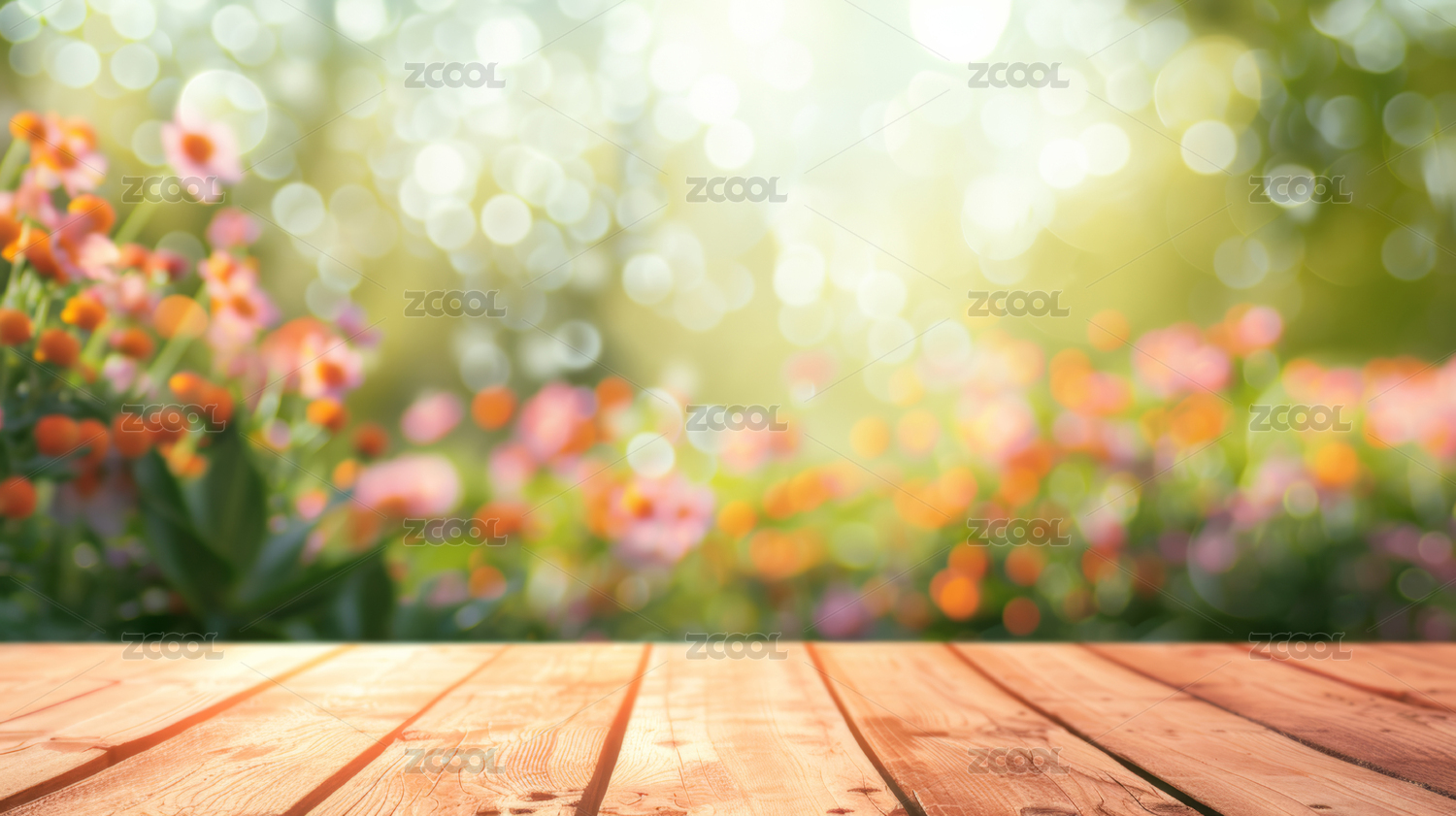 樱花树下的木平台主题