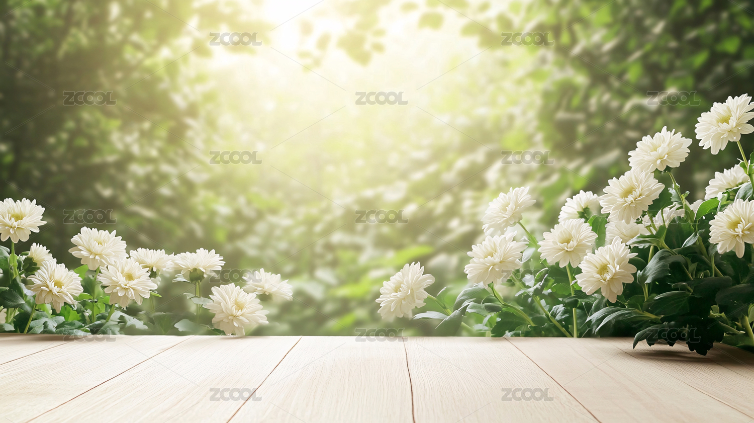 白色花朵木质桌面背景图