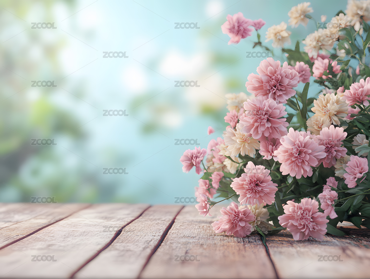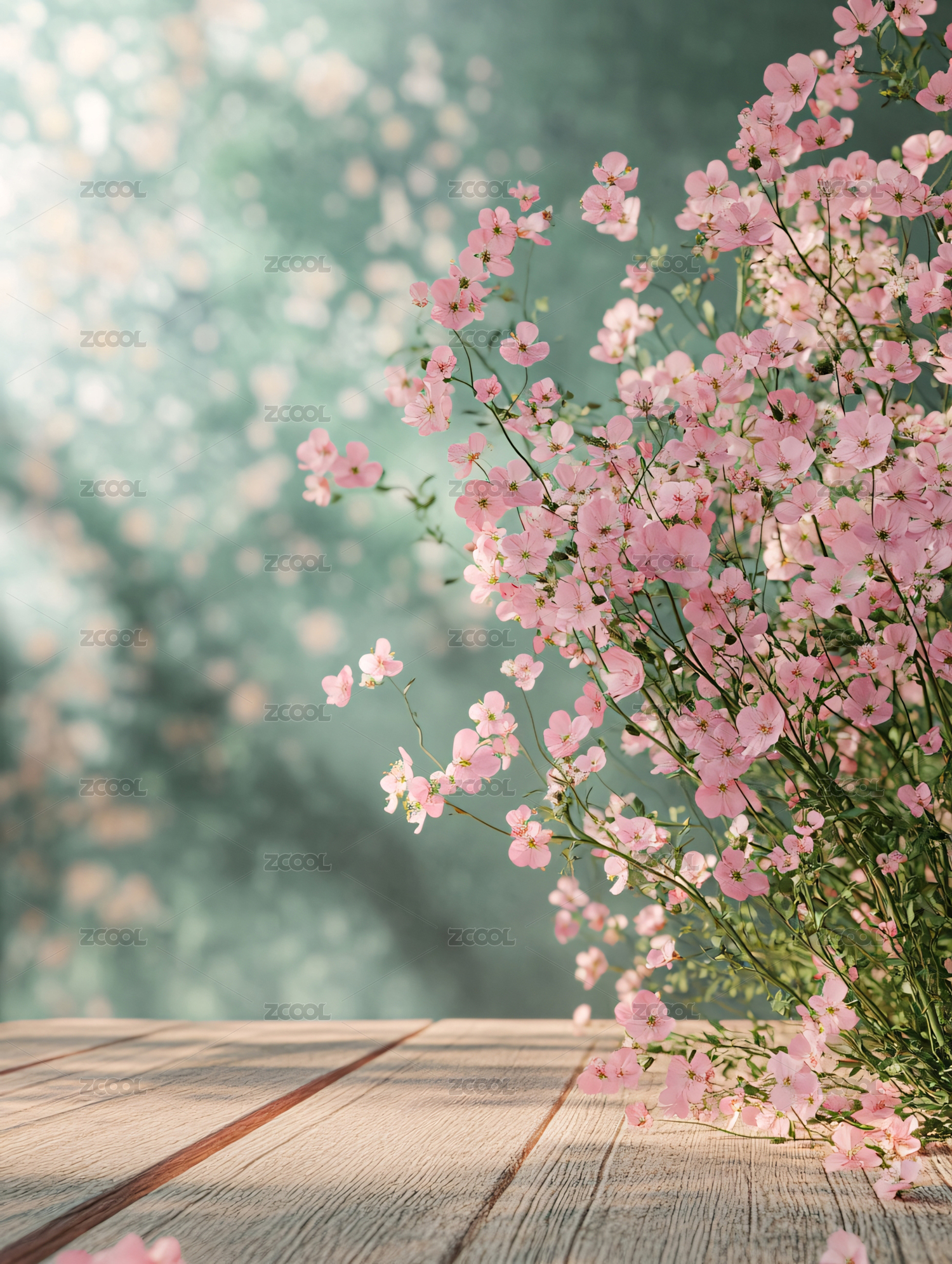 粉红色花朵木质桌面背景