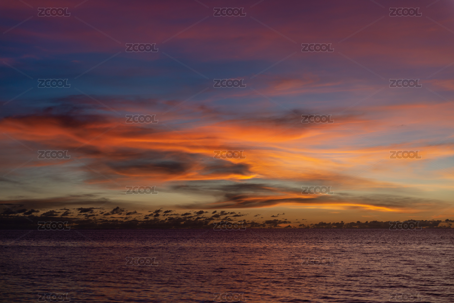 早晨辽阔的海面上彩霞满天太阳冉冉升起