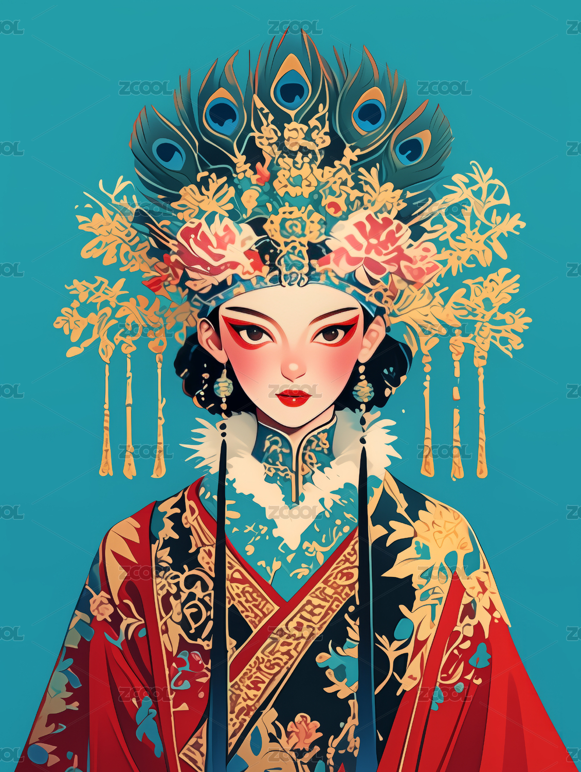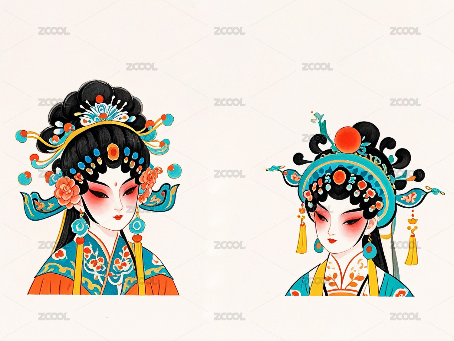 DXCZ202404,戏曲,传统,艺术,彩妆,头饰,服饰,水彩画,双人,装饰