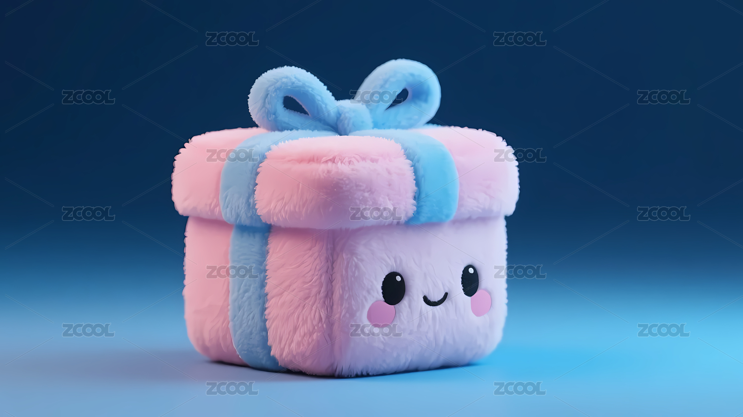 粉色毛绒礼物盒与蓝色蝴蝶结