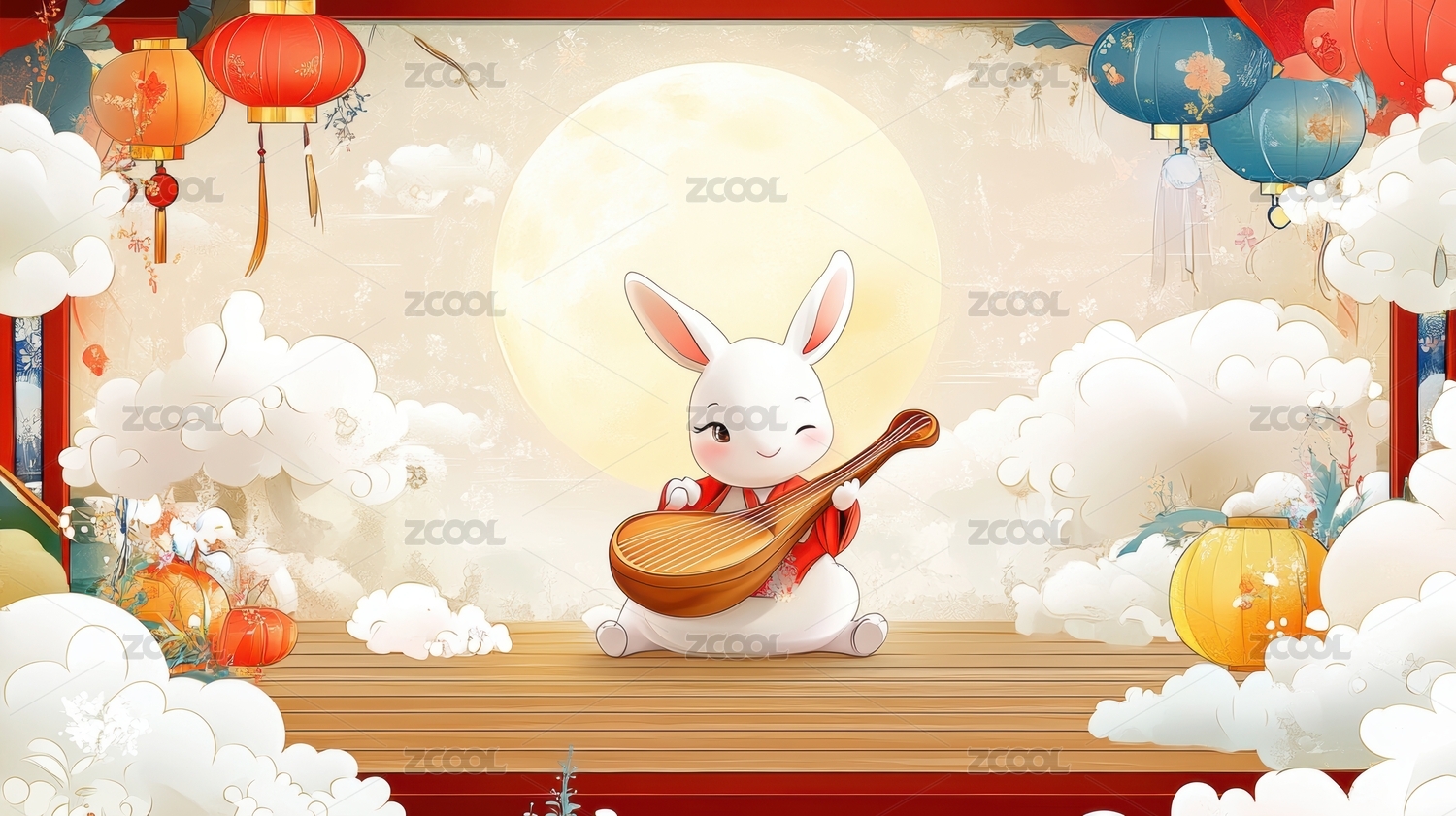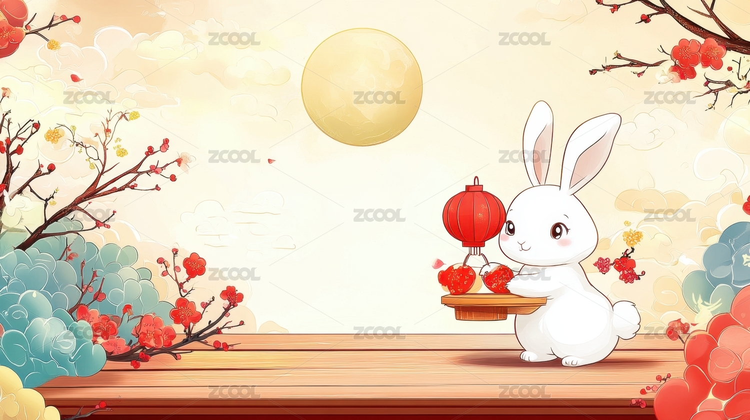 兔子玉兔月亮灯笼花可爱月饼3D立体风格