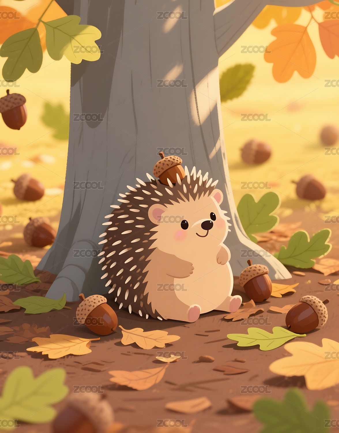 小动物,宠物,萌宠,卡通,漫画,插画,动物,秋日,秋季,秋天