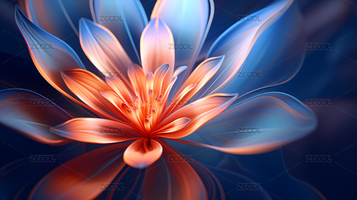 花朵花瓣绽放科技背景抽象数字艺术插画