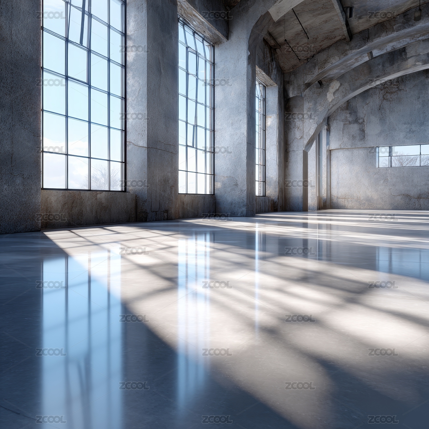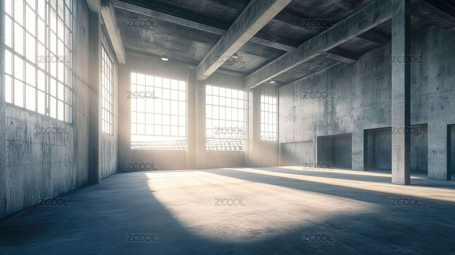 高大空旷工业大厅内景
