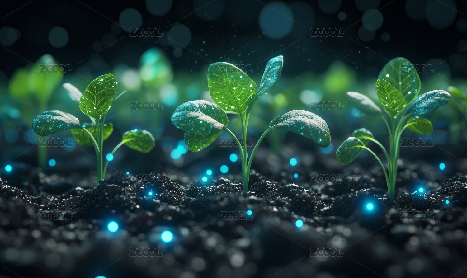 植物,生长,科技,未来,光点,土壤,绿色,自然,科技感,未来感
