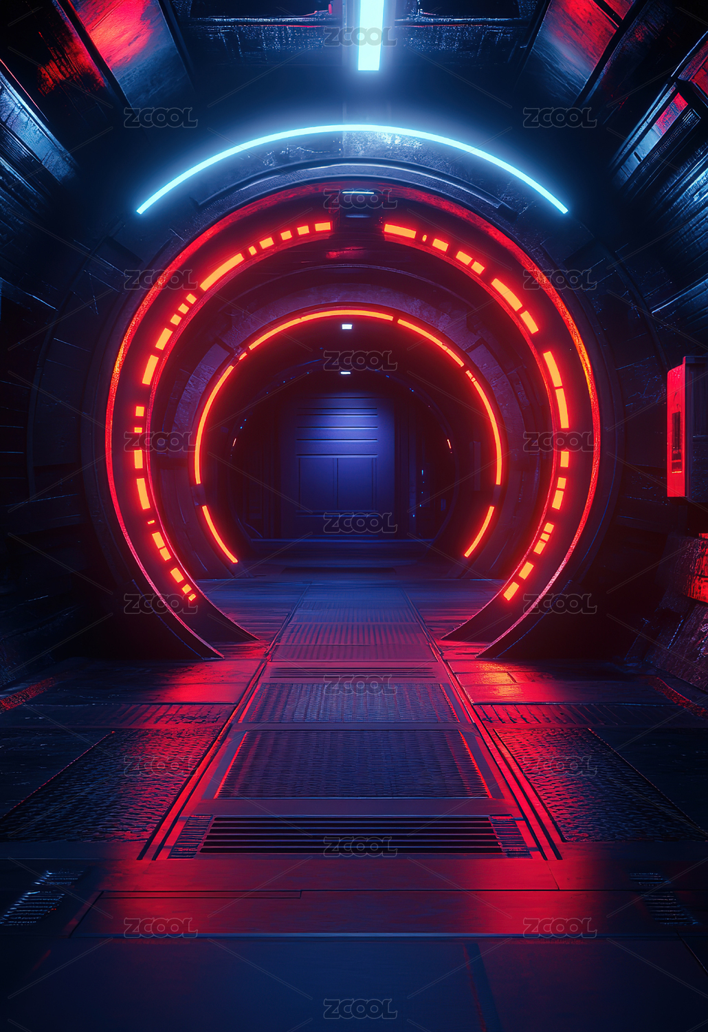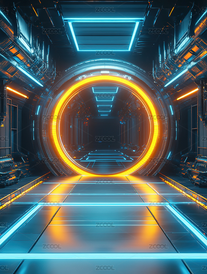 3D霓虹光圈未来科技空间感商务背景3D霓