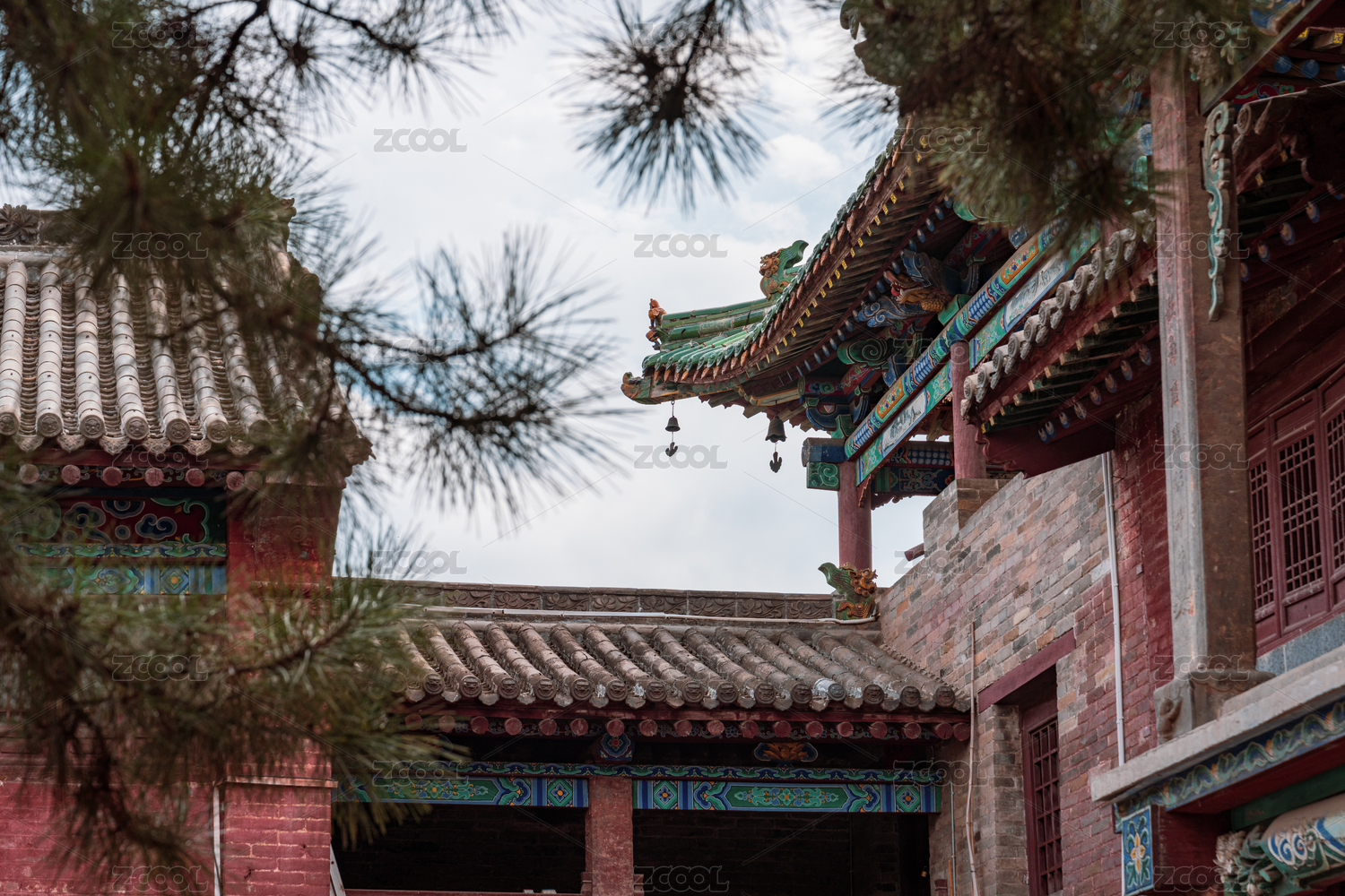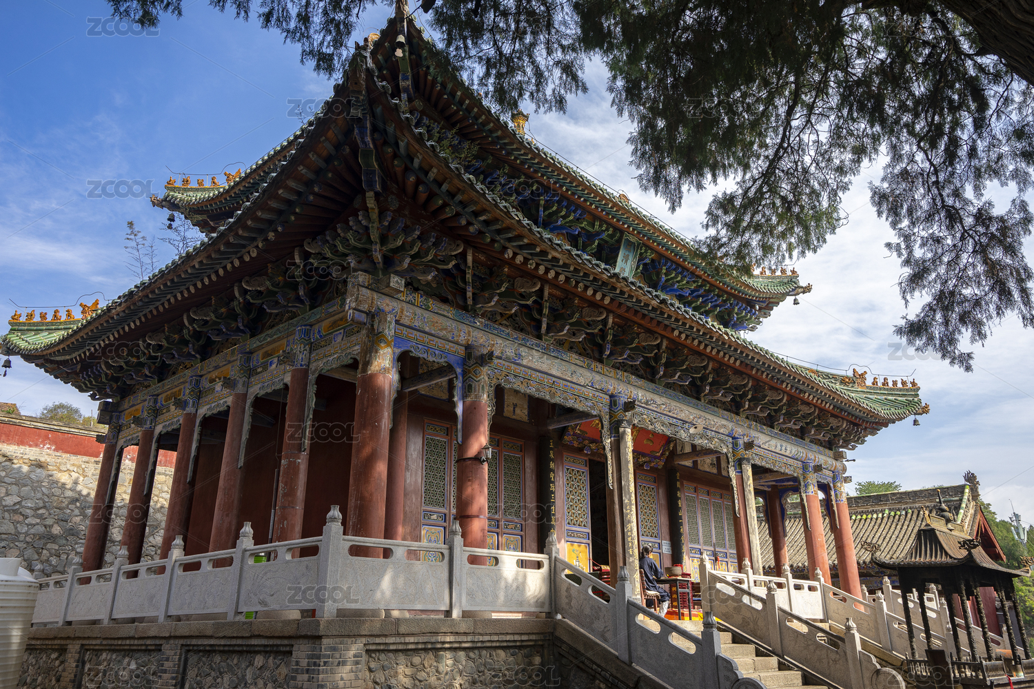 山西五台山古建飞檐映蓝天