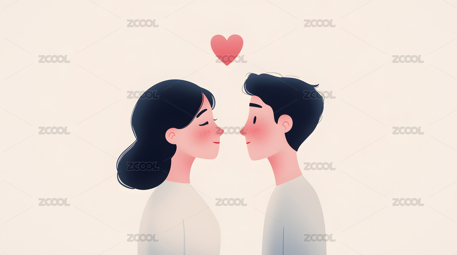 卡通七夕情人节情侣爱心插画
