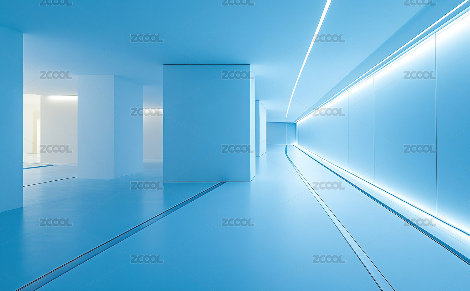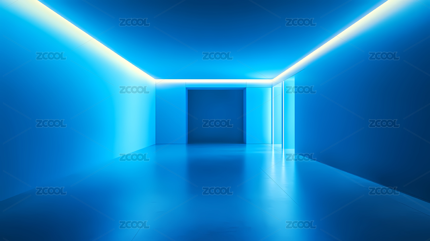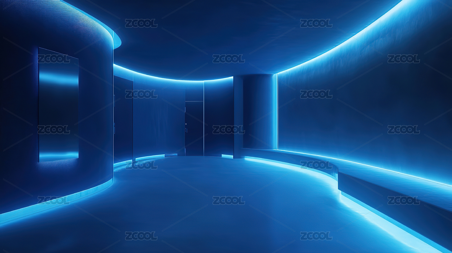 现代,蓝色,宽敞,瓷砖,灯具,光线,屏幕,简洁,空旷,艺术