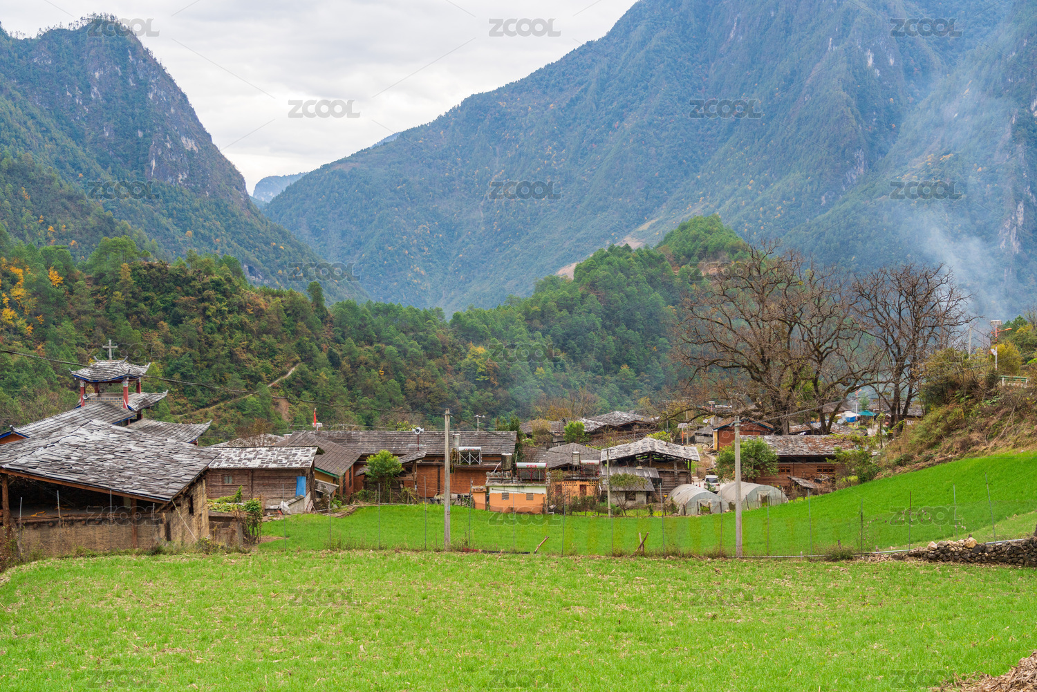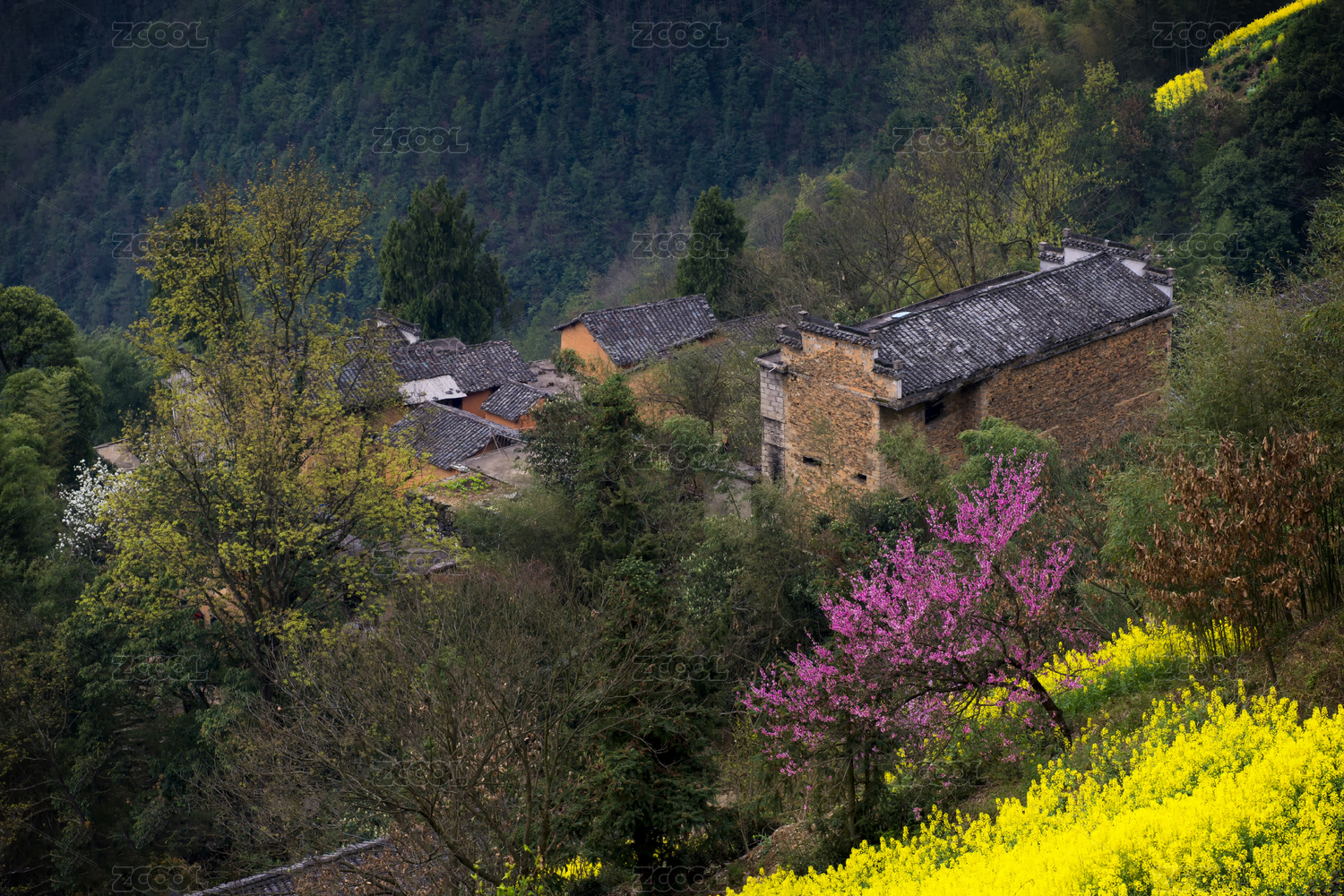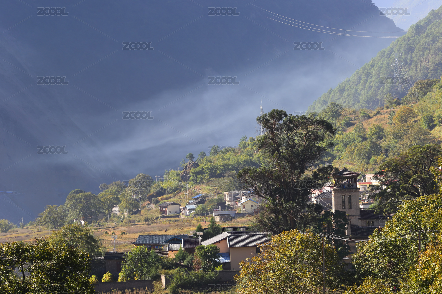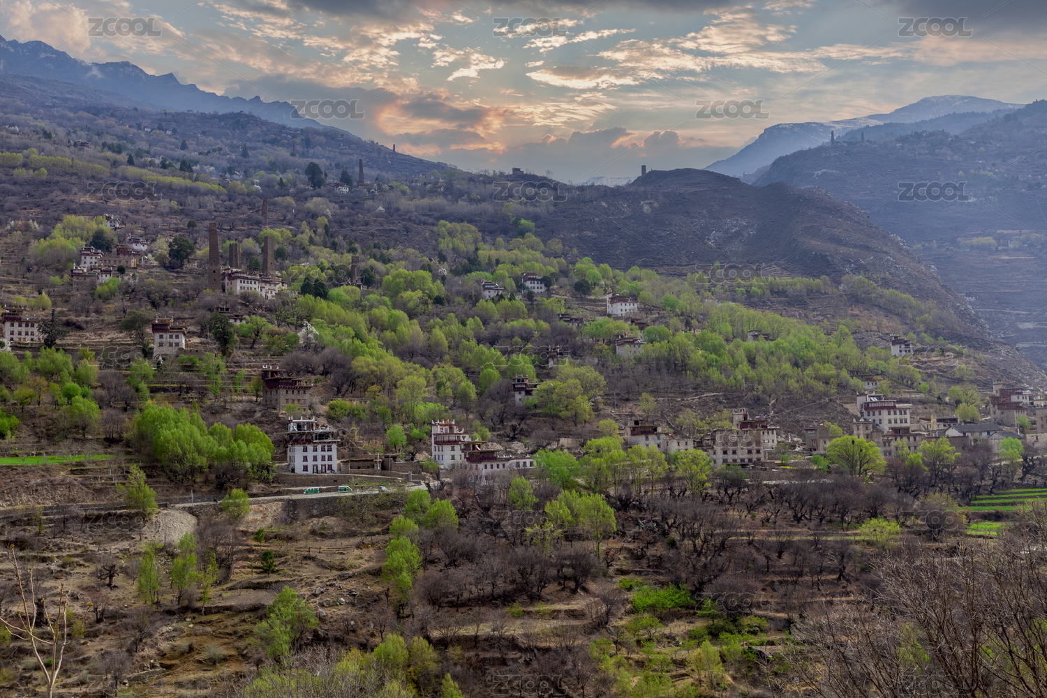 羌寨古树绿色围墙古代古建筑破旧碉楼民族,无人,自然