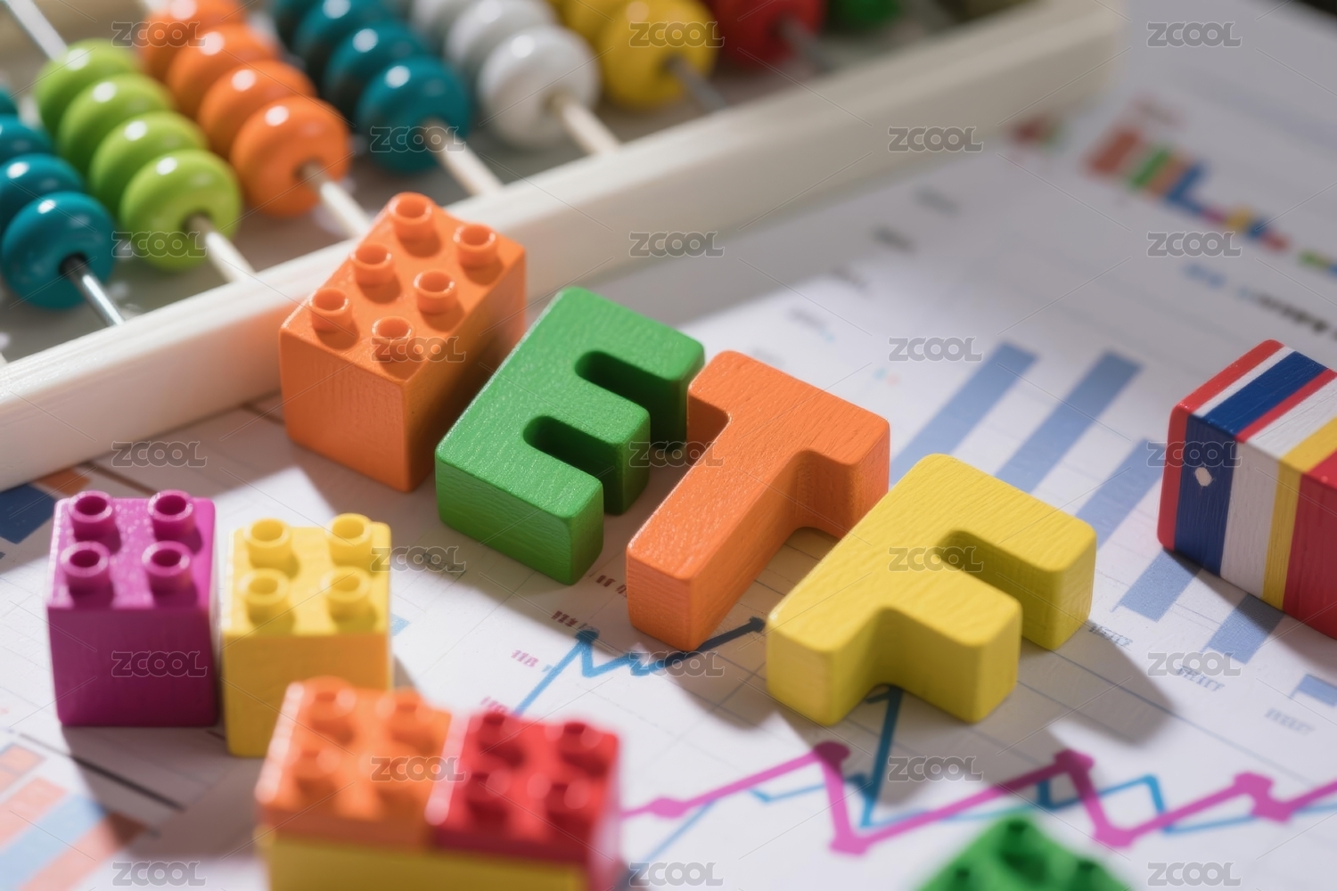 金融办公用品上放着字母积木FOF