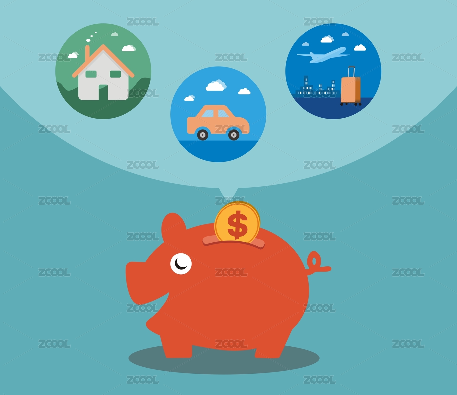 储蓄,梦想,向往,汽车,旅游,房子,买房,买车,旅行,图标