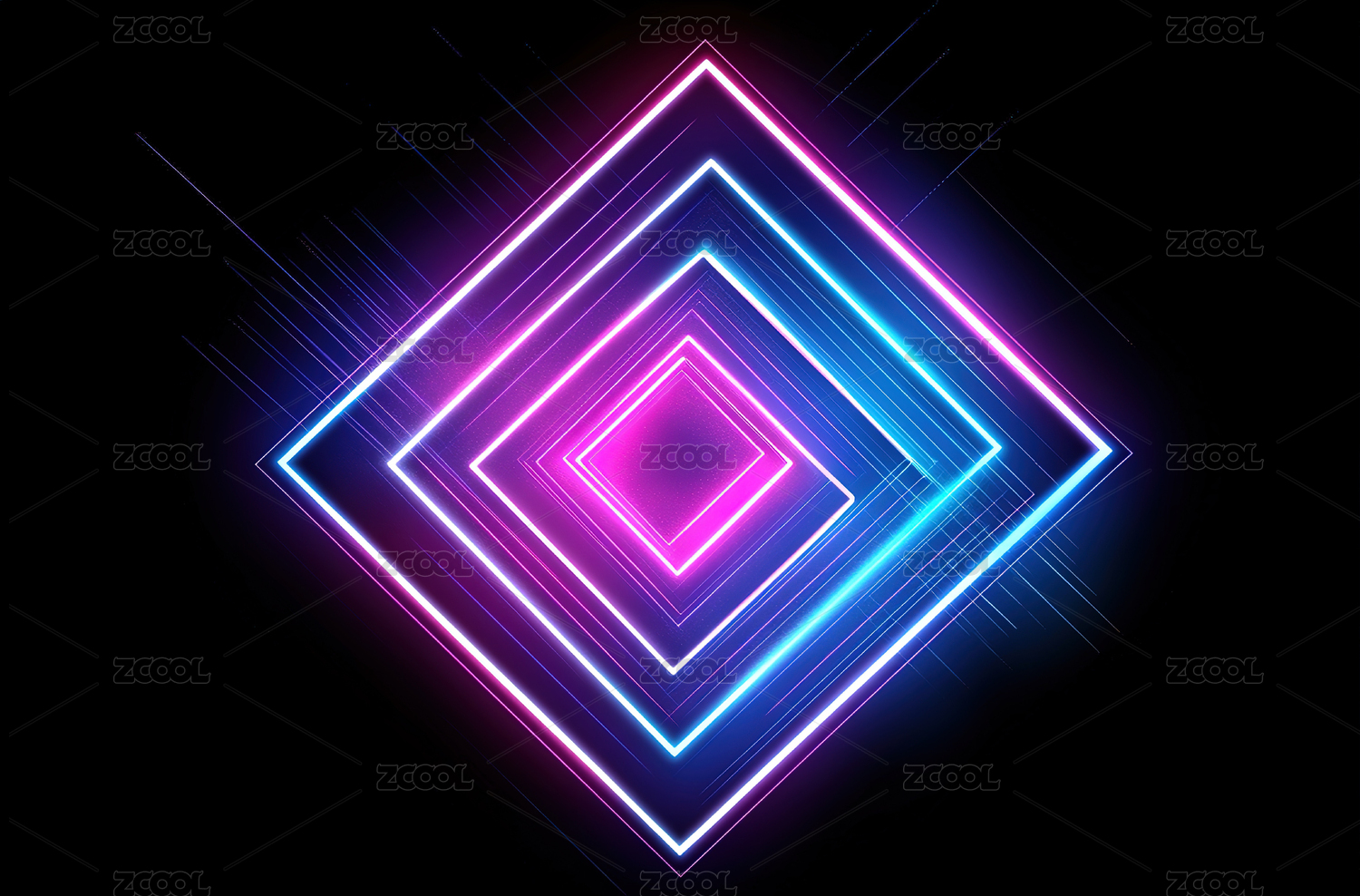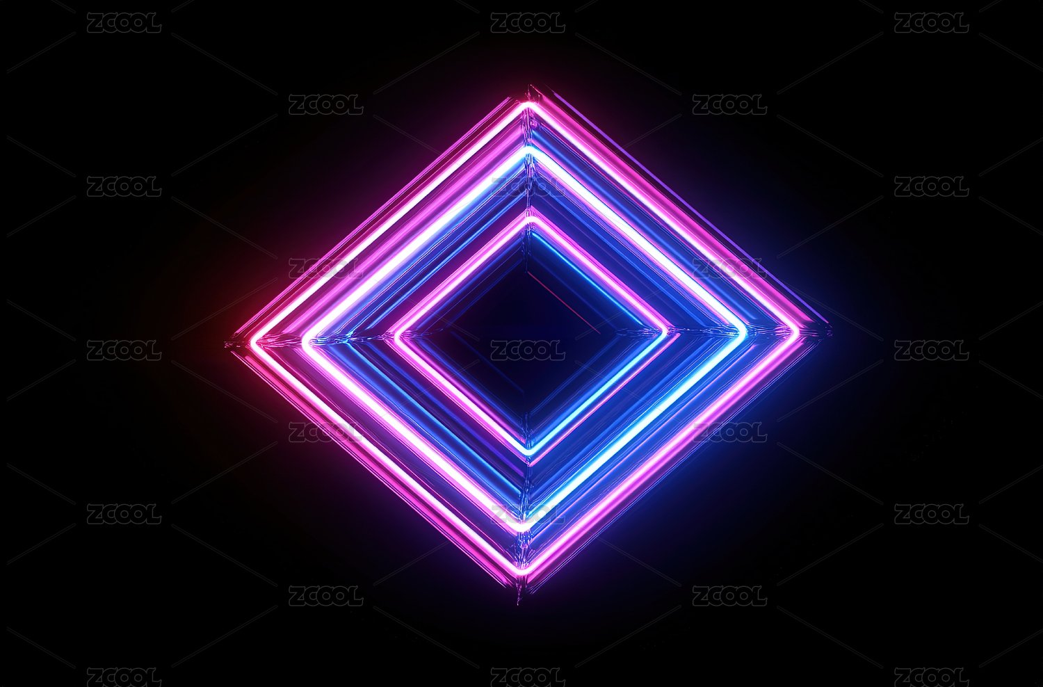 红蓝色霓虹灯环绕构成的发光通道隧道
